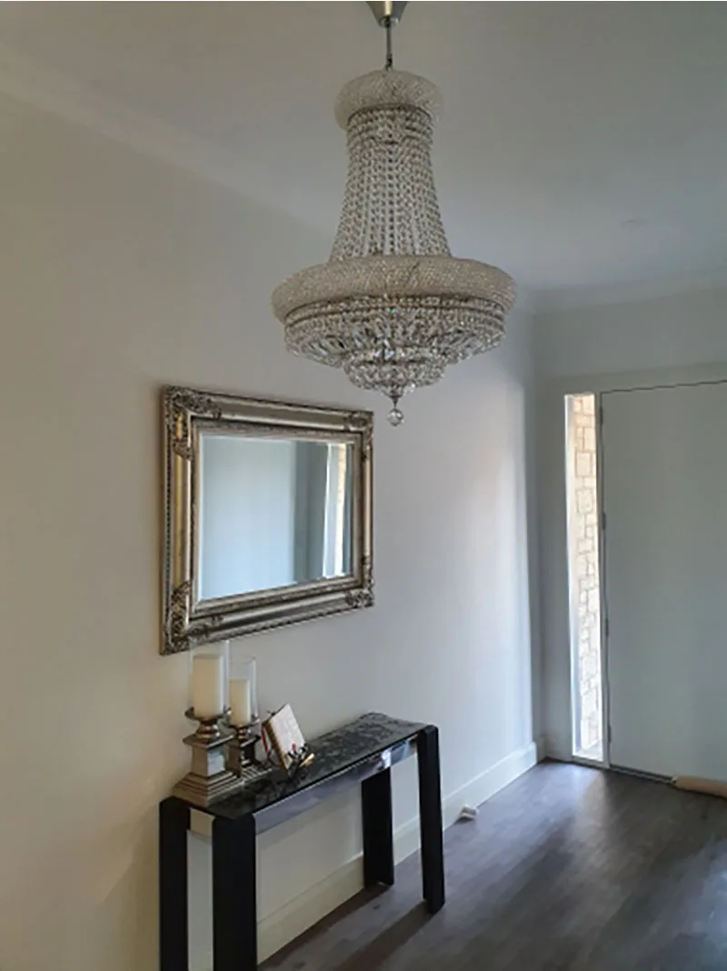Illuminate your space with this chic empire lights chandelier! Classy openwork design, crafted with the frame, delicate and raindrop balls. When the lights are on, beautiful and sparkling lighting will disperse from the shade, making your rooms superior to luxury. Comes with an adjustable chain that allows this fixture to work on high/low/sloped ceilings. Stunning chandeliers need time to finish assembly, it's definitely worth it after installation.