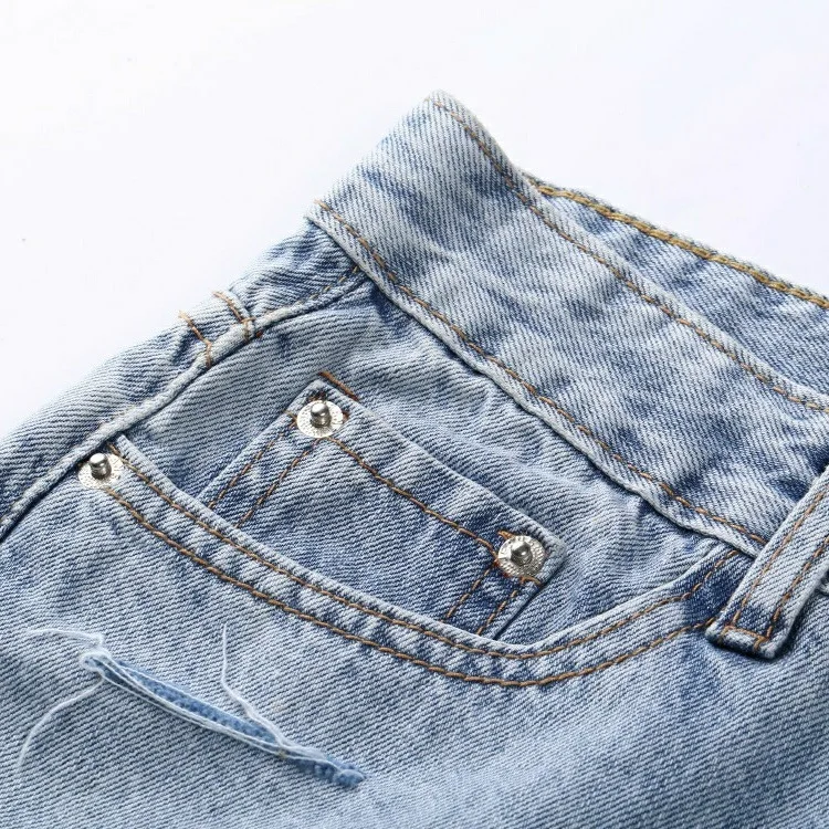 These high-waisted denim shorts feature wide legs and stylish rhinestone and tassel details, blending European and American casual fashion. Made from polyester denim with a regular fit, they are designed for women and ideal for summer wear. Crafted in Guangdong, China, these solid-pattern shorts offer a comfortable and fashionable choice for everyday casual style.