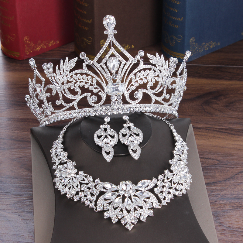 Elegant European and American Style Bride Three-Piece Wedding Crown