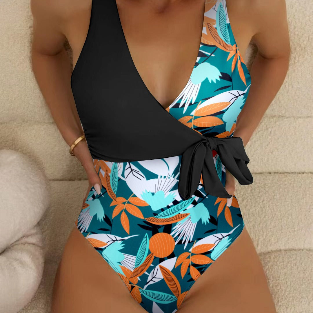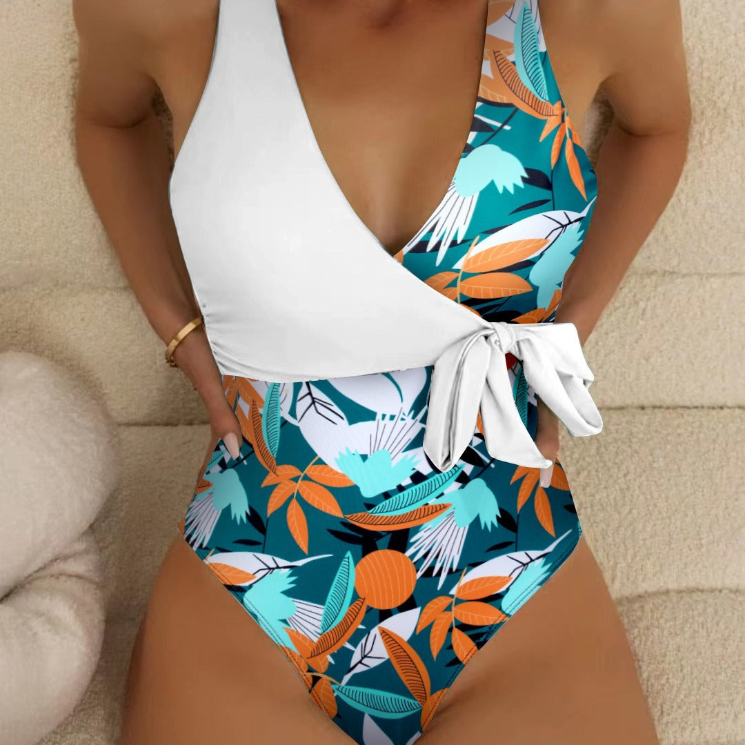 European and American women's one-piece swimsuit, color blocked swimsuit, foreign trade sexy cross holiday swimsuit