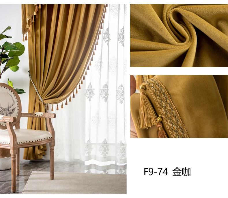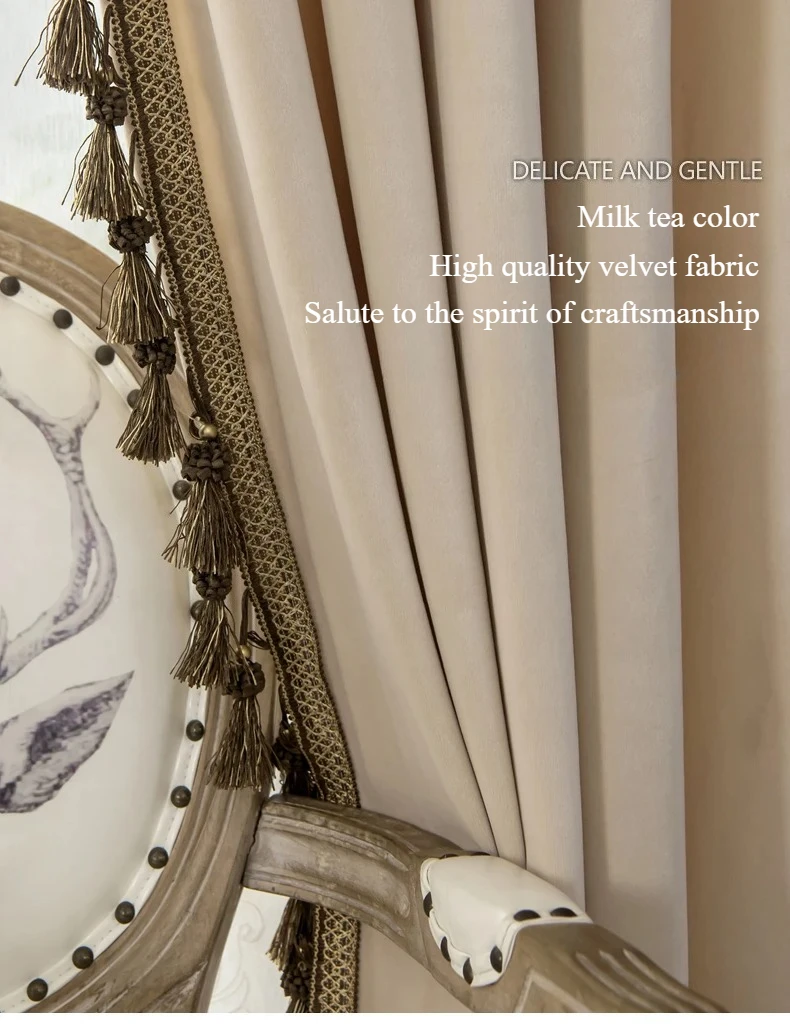 European Velvet Curtains for Living Room Bedroom Villa Luxury Pink Milk Tea Color Solid Color Curtain Head Mantle Valance
