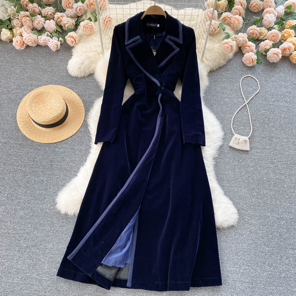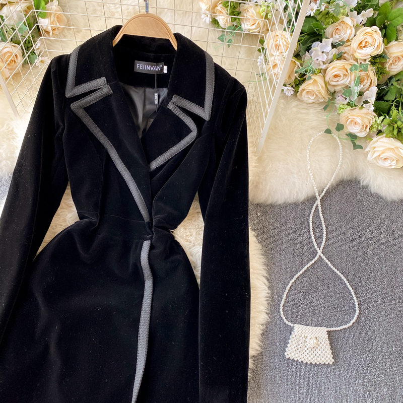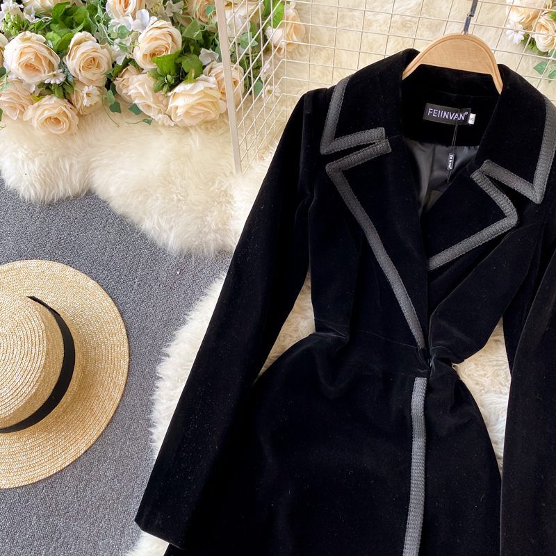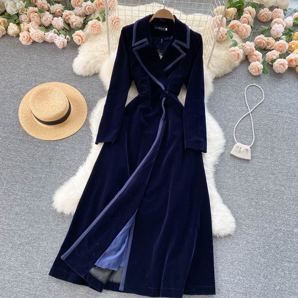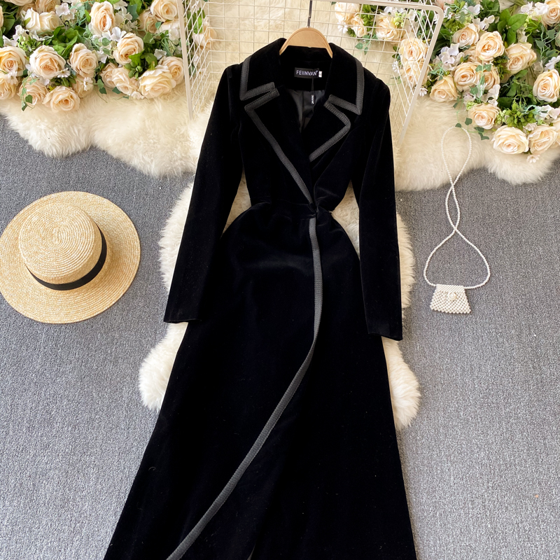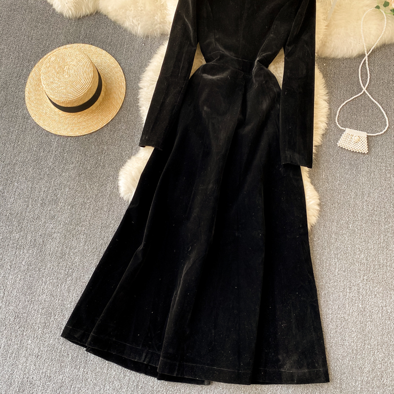 Experience refined sophistication with this fall midi dress, expertly crafted from luxurious velvet that drapes beautifully in an A-line silhouette. The elegant turn-down collar and full-length sleeves create a polished look perfect for cooler seasons, while the loose fit ensures all-day comfort and ease of movement. Featuring practical pockets and durable construction with anti-wrinkle and breathable properties, this versatile piece transitions effortlessly from casual outings to more refined occasions. The natural waistline flatters your figure, making this timeless dress an essential addition to your winter wardrobe that combines style with everyday wear.