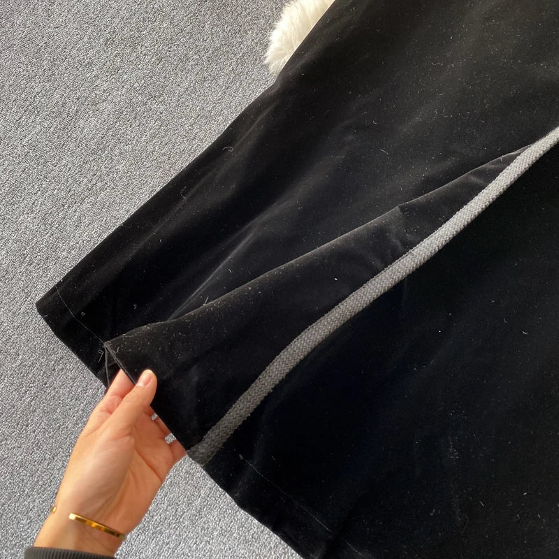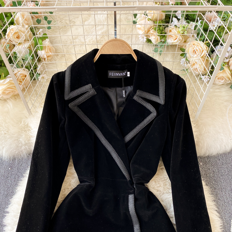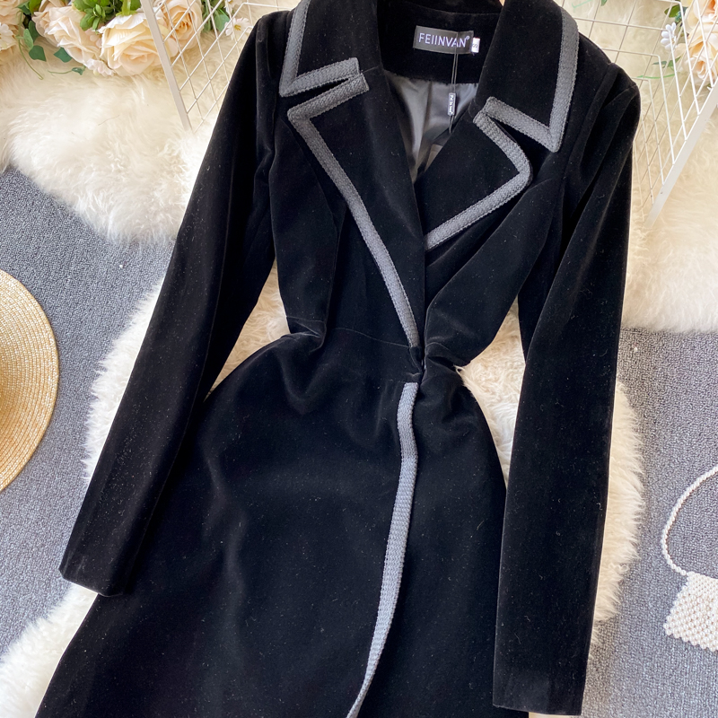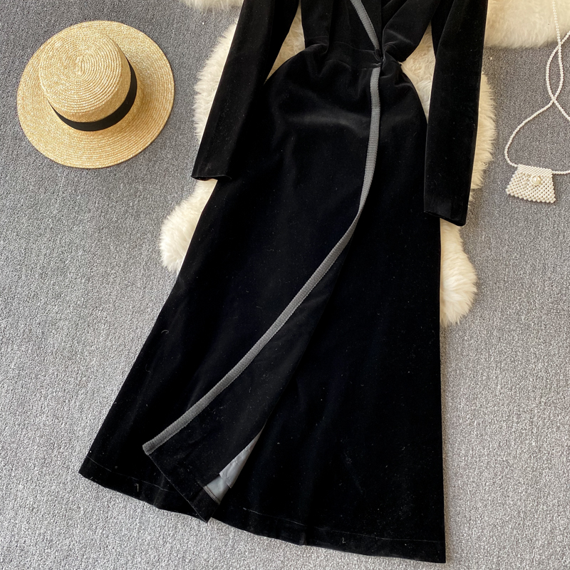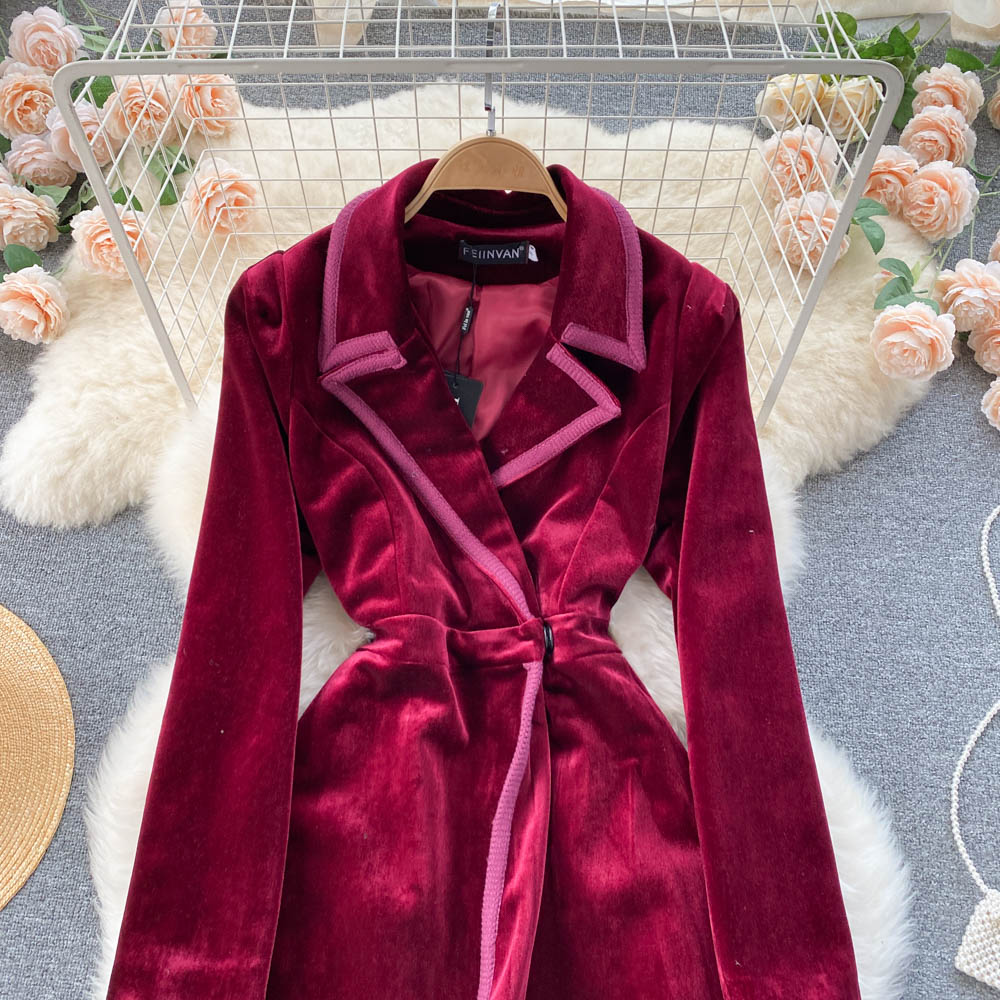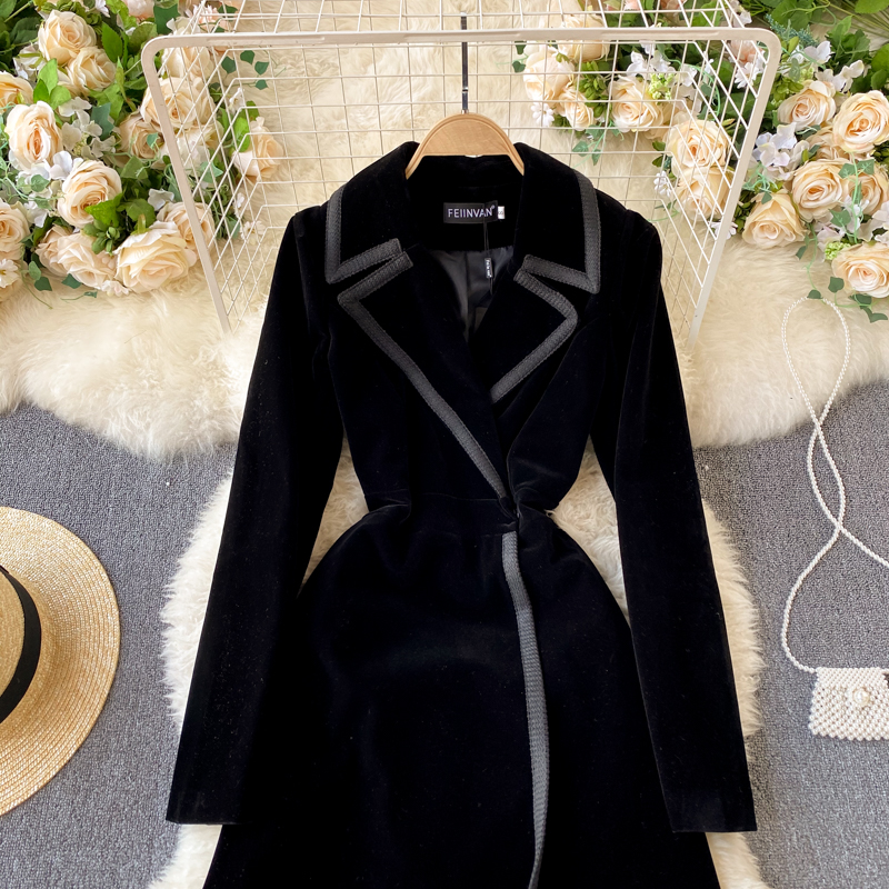 Experience refined sophistication with this fall midi dress, expertly crafted from luxurious velvet that drapes beautifully in an A-line silhouette. The elegant turn-down collar and full-length sleeves create a polished look perfect for cooler seasons, while the loose fit ensures all-day comfort and ease of movement. Featuring practical pockets and durable construction with anti-wrinkle and breathable properties, this versatile piece transitions effortlessly from casual outings to more refined occasions. The natural waistline flatters your figure, making this timeless dress an essential addition to your winter wardrobe that combines style with everyday wear.