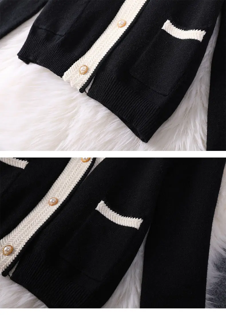 Elevate your office wardrobe with this chic knitted two-piece set featuring a simple V-neck, single-breasted cardigan paired with loose, wide-leg pants. Crafted from a comfortable blended fabric with a high waist and elastic waistband, this set offers a relaxed yet polished fit perfect for autumn and winter. The classic design with button details and practical pockets combines style and functionality, making it an ideal choice for a sophisticated, professional look.