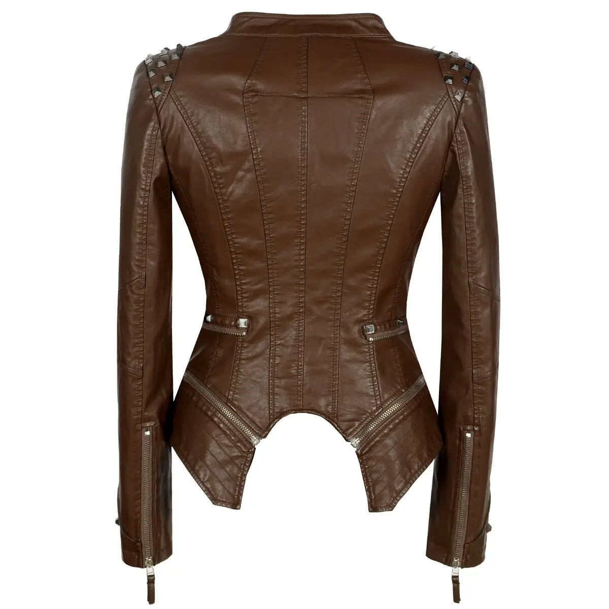 Fashion Women Smooth Motorcycle PU Leather Faux Jacket Long Sleeve