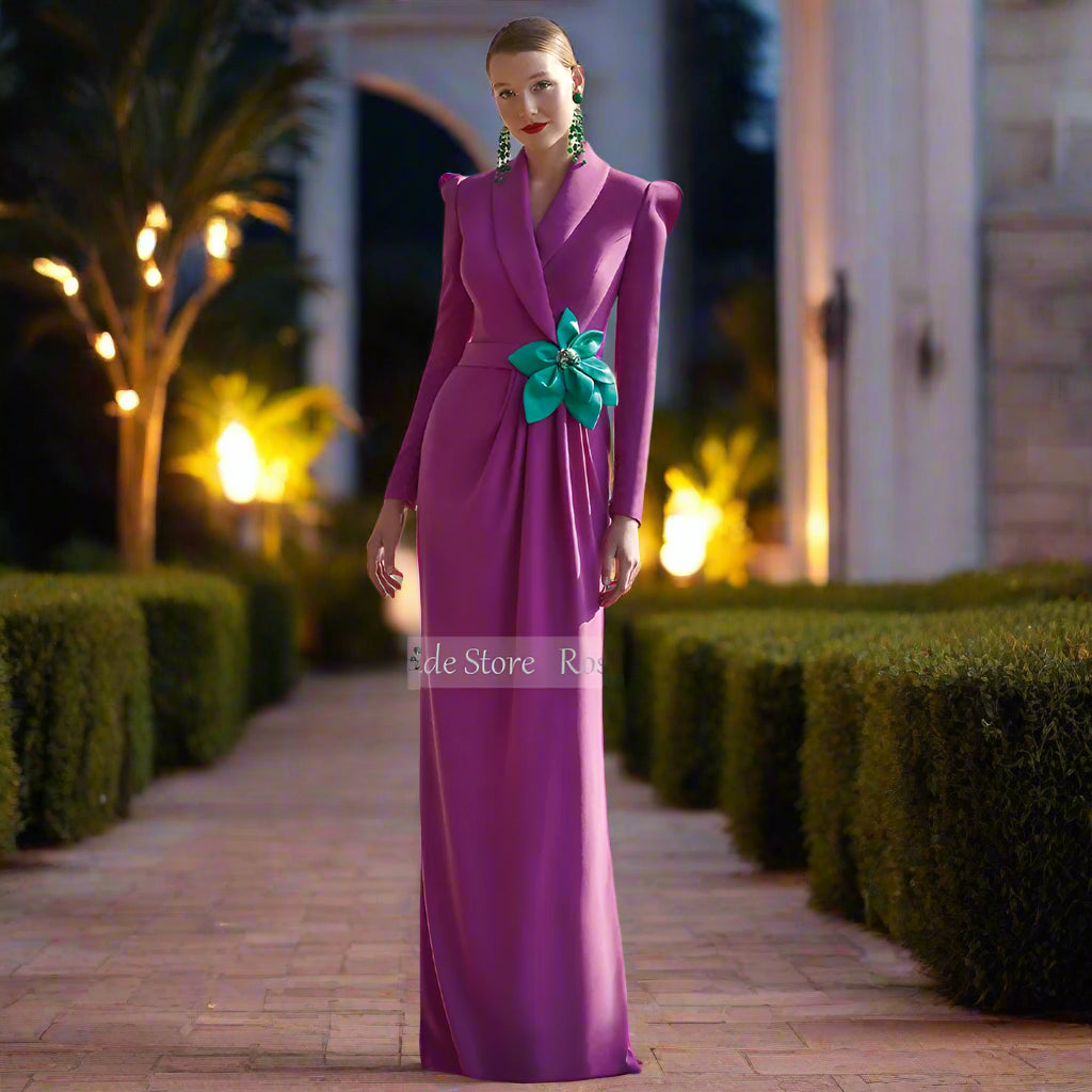 Experience the exquisite beauty and elegance of our Fuchsia Formal Evening Dress. With its long sleeves, V-neck, and mermaid silhouette, this dress is perfect for any special occasion. The luxurious fabric and intricate flower detailing add a touch of femininity, making it a must-have for a modern and stylish woman. Whether it's a wedding, evening event, or cocktail party, this dress will make you feel confident and glamorous. Custom-made to your precise measurements and available in a variety of stunning colors, this dress will be handcrafted with care and delivered to you within 7-15 days. Make a bold statement and turn heads wherever you go with our Fuchsia Formal Evening Dress.