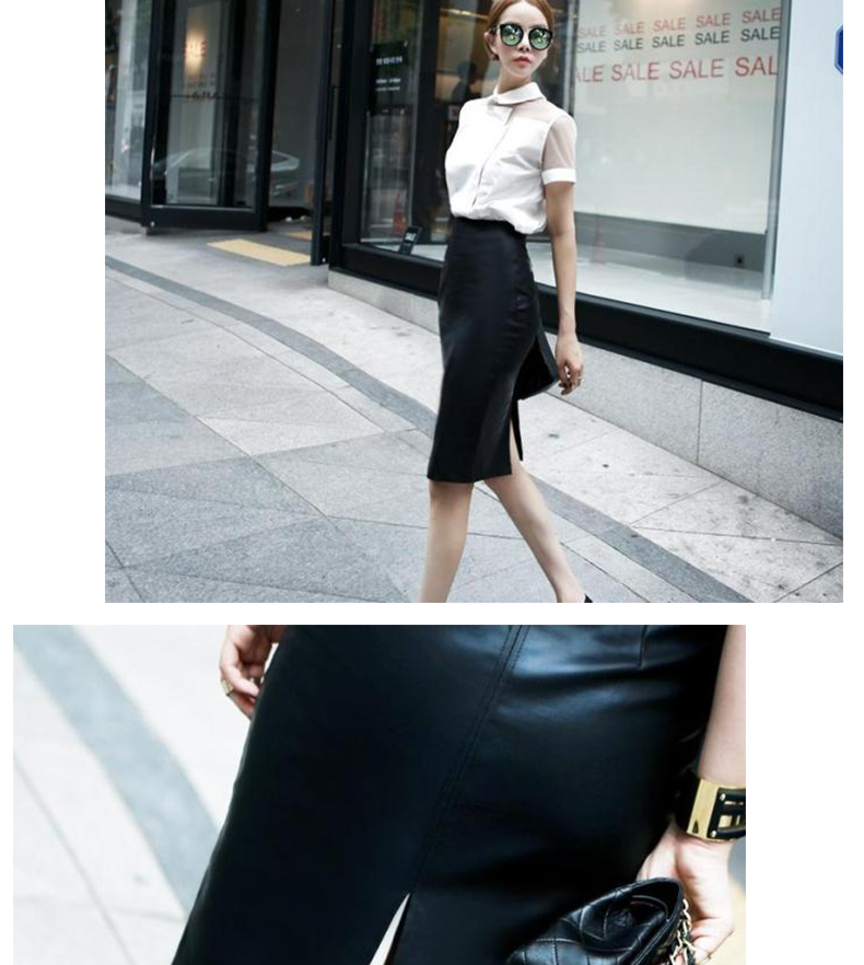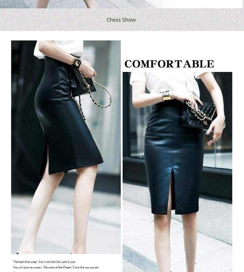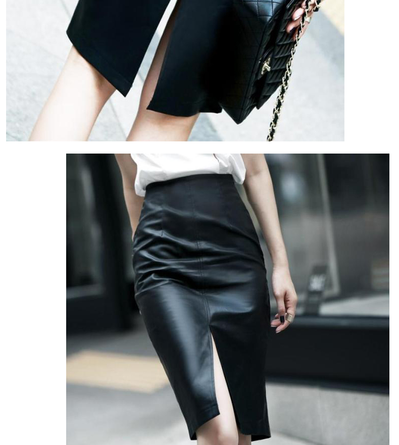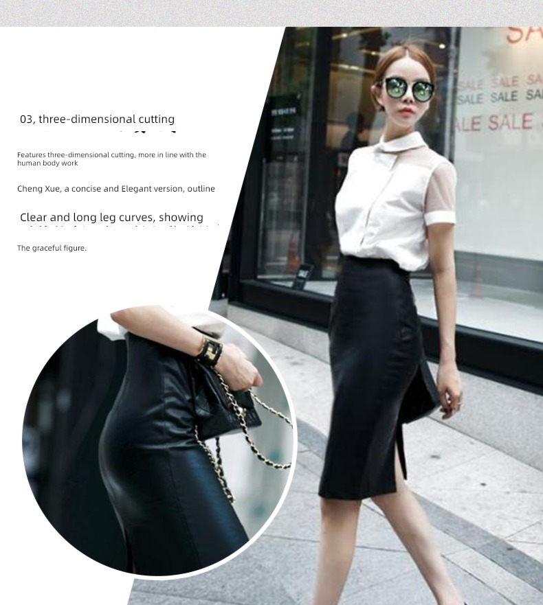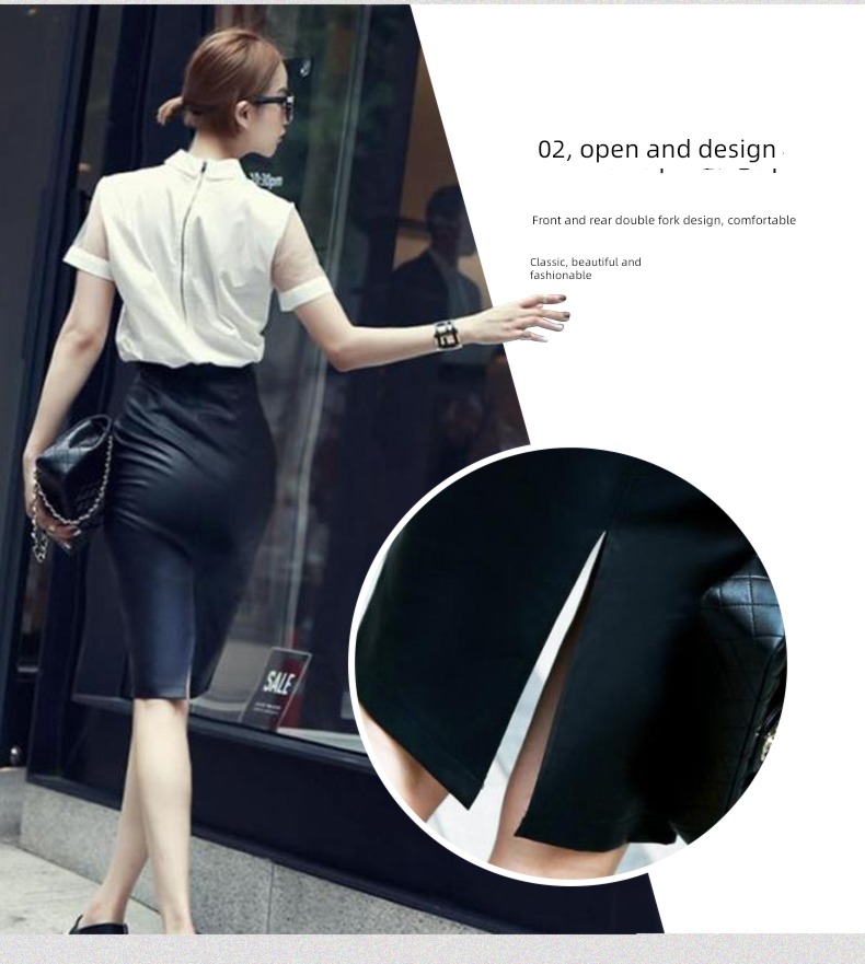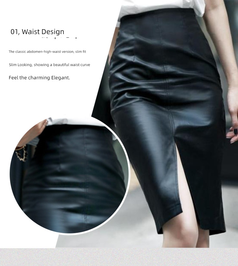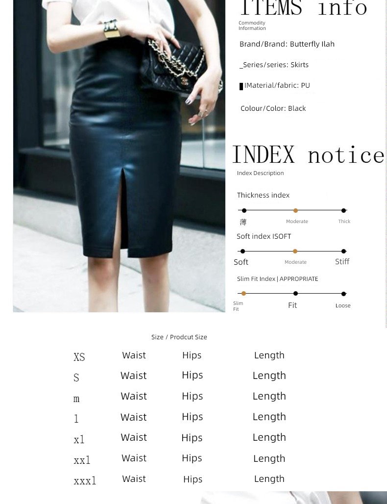 Passionate and Inspiring Discover the impeccable style with our stunning Front and Rear Slim-Fit High Waist Slim Leather Skirt. Made with 95% or more premium quality materials, this mid-skirt will elevate your wardrobe to new heights. Carefully crafted with top-notch PU texture ingredients, every detail has been meticulously designed for the fashion-forward individual. Featuring a flattering high waist design, this skirt is perfect for the upcoming fall season. Trust us, once you try on this skirt, you won't want to take it off!