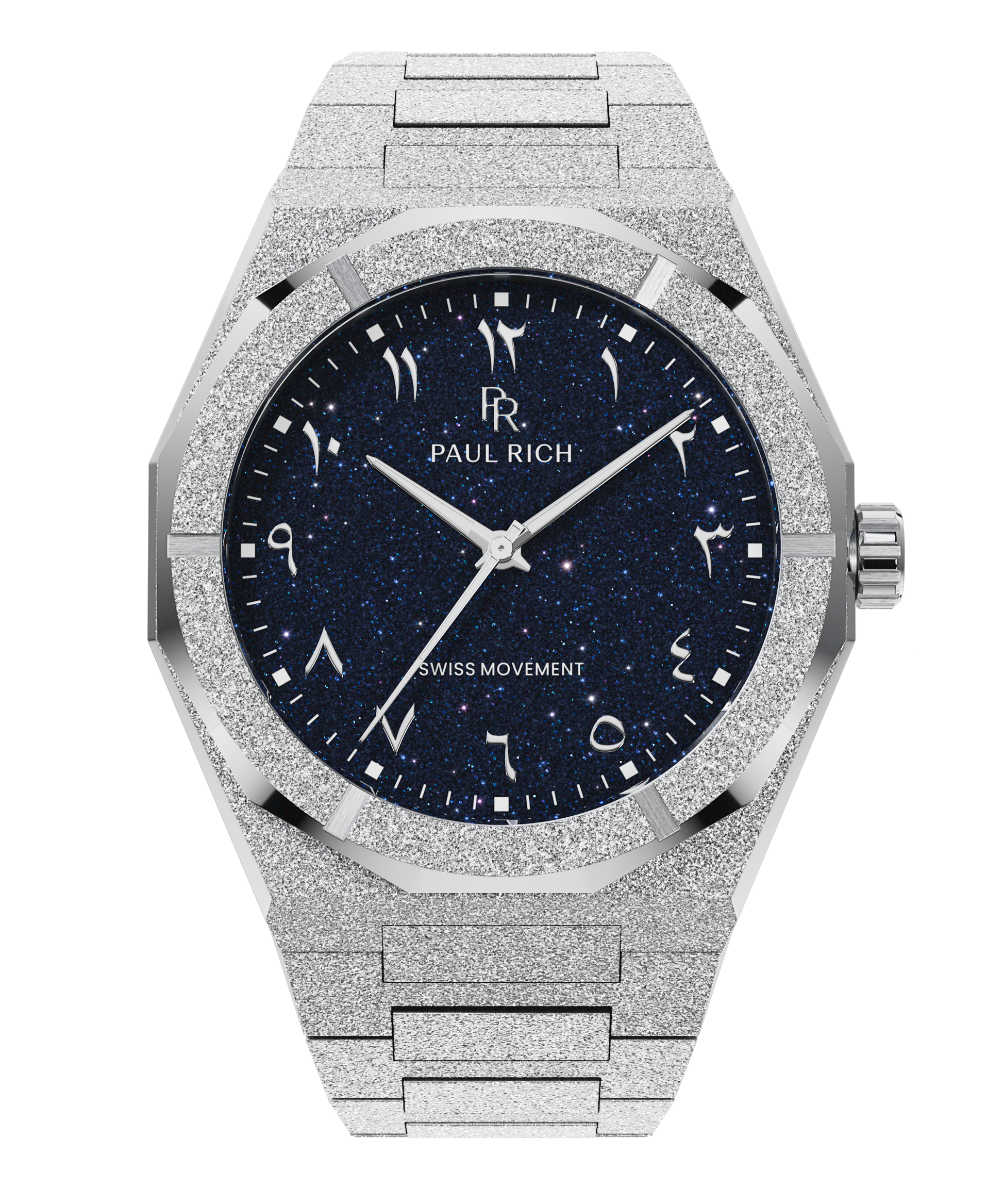 A fusion of cosmic elegance and Arabic heritage. This watch isn’t just about time—it’s about legacy. Arabic numerals on a galaxy dial, a nod to the Arabic world’s impact on math and astronomy. Wrapped in stainless steel with a frosted finish that hits like diamond dust. This isn’t just a watch; it’s culture on your wrist. Bold. Proud. Unmatched.