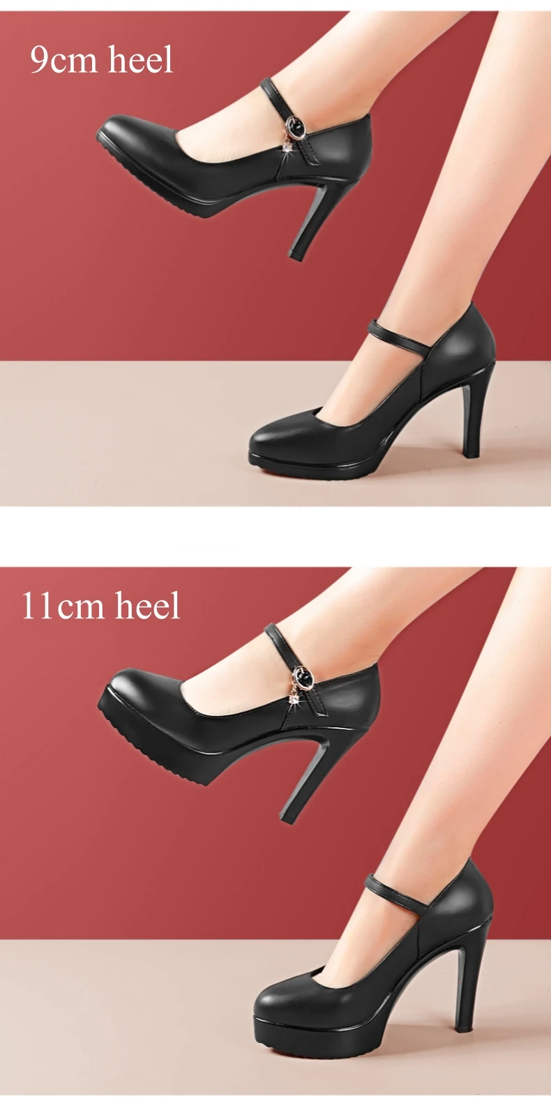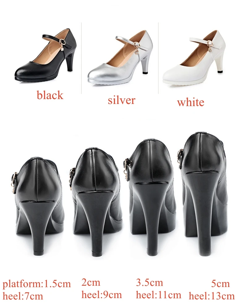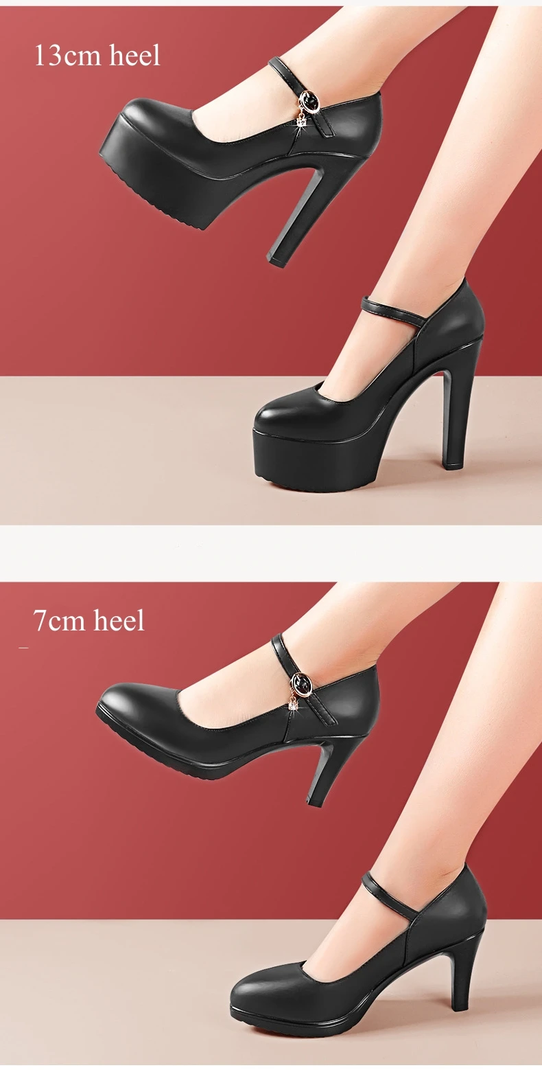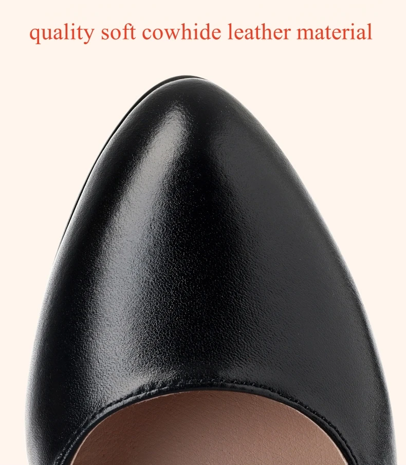 This pair of Genuine Leather Platform Pumps Shoes boasts a Cow Leather upper with a pointed toe for added sophistication. The platform height of 0-3cm and high 5cm-8cm heel make them perfect for any elegant occasion. Their solid design and ankle strap add a touch of fashion to your outfit. Plus, the PU insole and tpu outsole ensure maximum comfort and stability. These pumps are a perfect fit for any office, model, court, dress, work, dance, or wedding ensemble. Don't miss out on these stylish and versatile Women Mary Janes Shoes - they fit true to size and are the perfect addition to any wardrobe!
