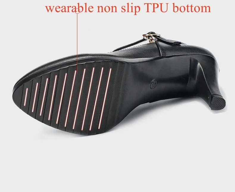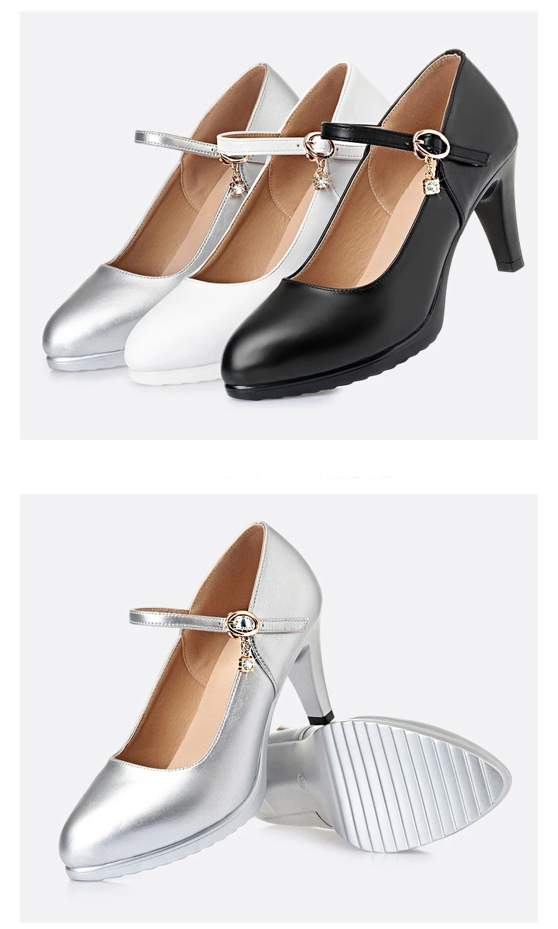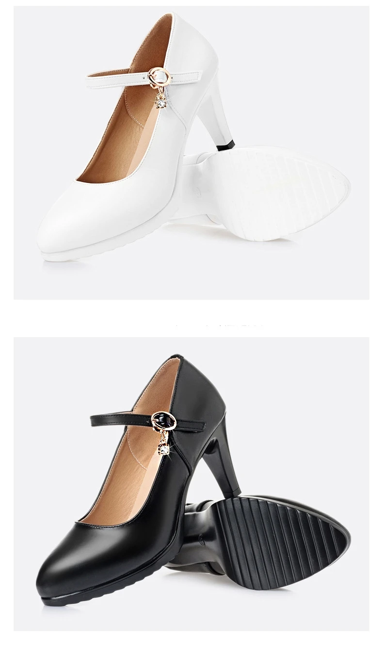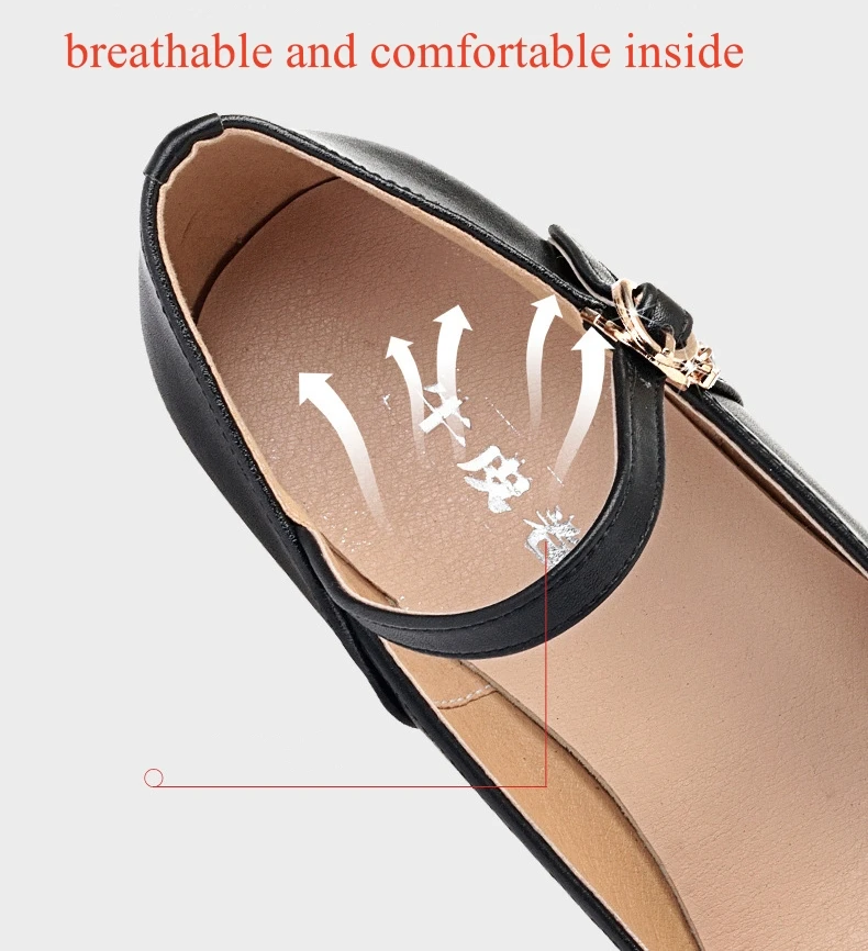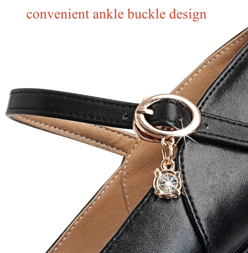 This pair of Genuine Leather Platform Pumps Shoes boasts a Cow Leather upper with a pointed toe for added sophistication. The platform height of 0-3cm and high 5cm-8cm heel make them perfect for any elegant occasion. Their solid design and ankle strap add a touch of fashion to your outfit. Plus, the PU insole and tpu outsole ensure maximum comfort and stability. These pumps are a perfect fit for any office, model, court, dress, work, dance, or wedding ensemble. Don't miss out on these stylish and versatile Women Mary Janes Shoes - they fit true to size and are the perfect addition to any wardrobe!