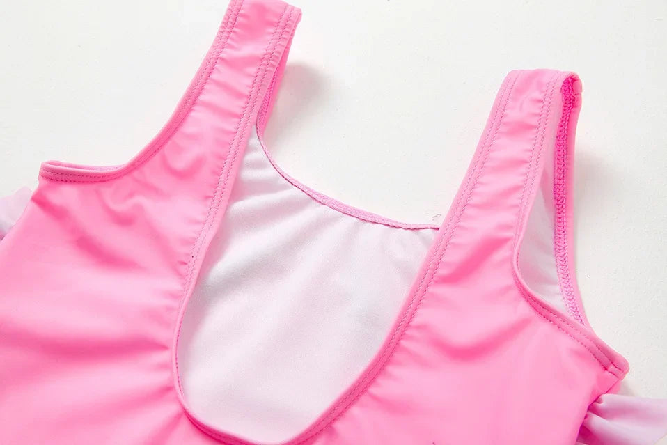 Transform your little one into a magical sea creature with our Girl Swimsuit One-Piece Mermaid Fish Scale Unicorn design. Perfect for ages 2-8 years, this enchanting swimwear combines polyester and spandex for comfort and durability. Note that sizing runs small, so consider ordering up. Ideal for summer vacations, this cartoon-patterned swimsuit will make your child stand out at the beach or pool. Made for babies with safe materials, it's the perfect blend of fantasy and function for your little swimmer.