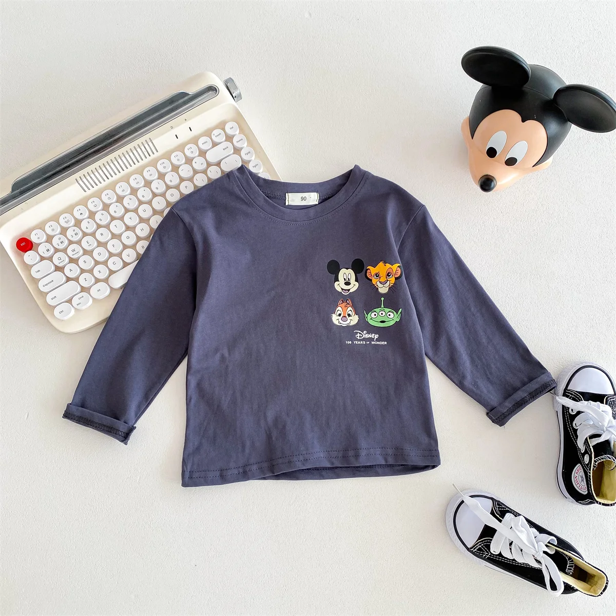 This Disney long sleeve cotton T-shirt showcases a cartoon print of Mickey Mouse and is designed for ages 7 months-6 years. Its regular fit and full-length sleeves make it ideal for the Spring and Autumn seasons. Available in various sizes, it is suitable for both boys and girls.