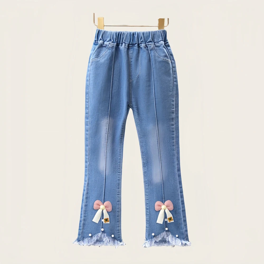 Girls Star Embroidered Jeans Pants with Pearl Slim-Fit age 7-13 yrs old
