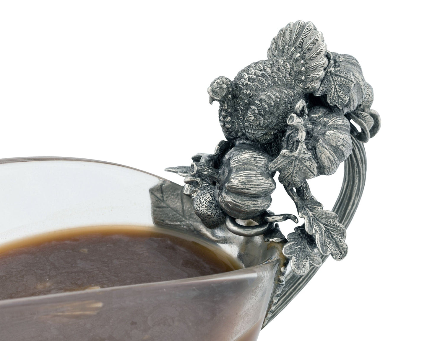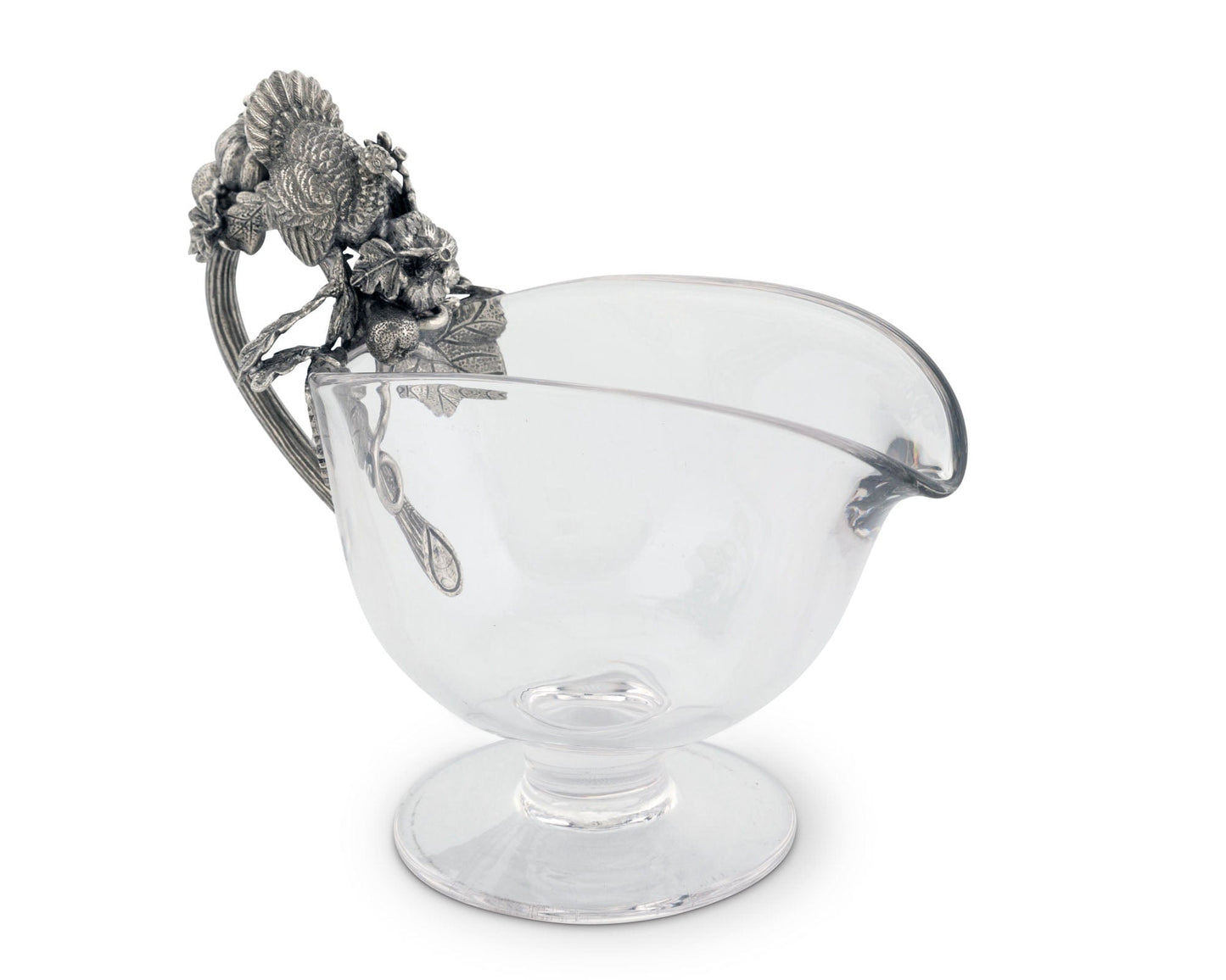 Hand Blown Glass Gravy Boat Pewter Harvest Turkey
