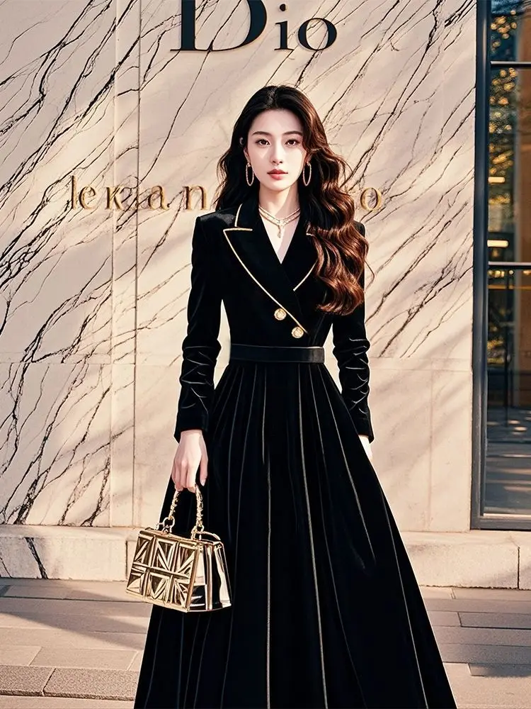 Elevate your everyday elegance with this High-End Chic Velvet Maxi Dress, a refined staple for the discerning woman. The classic turn-down collar and full-length sleeves deliver timeless sophistication, while the A-line silhouette provides a flattering, comfortable fit. Crafted from premium corduroy velvet in a luxurious cotton-polyester blend, this ankle-length dress combines texture and durability with understated style. The natural waistline creates a balanced proportion, and subtle button detailing adds refined character without overwhelming the design. Perfect for office settings, casual gatherings, or elevated everyday wear, this versatile maxi transitions effortlessly across seasons and occasions. Available in multiple sizes, it's designed for those who appreciate quality craftsmanship and timeless appeal.