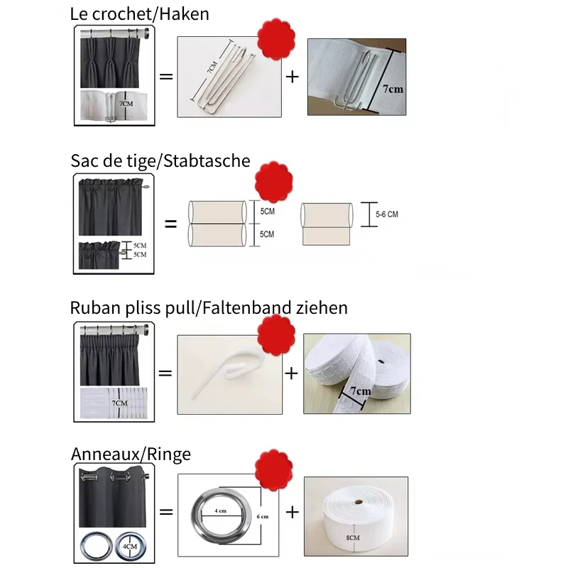Curtain Width: 1.5~2times of the window width