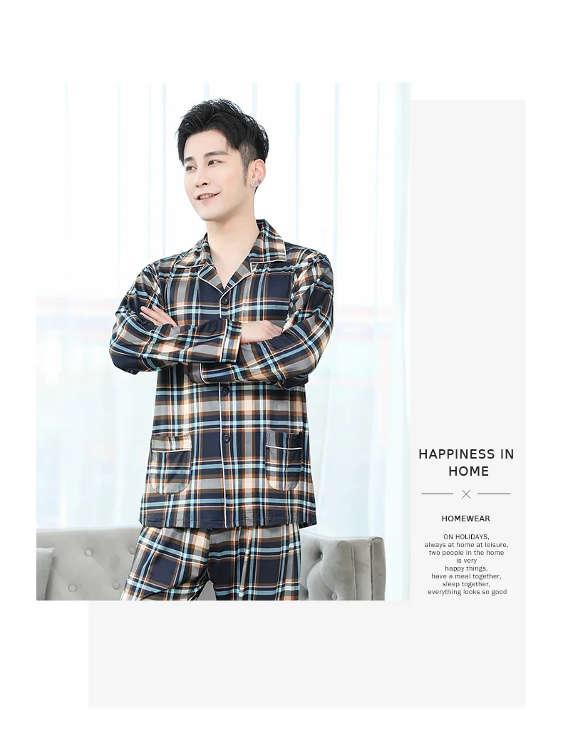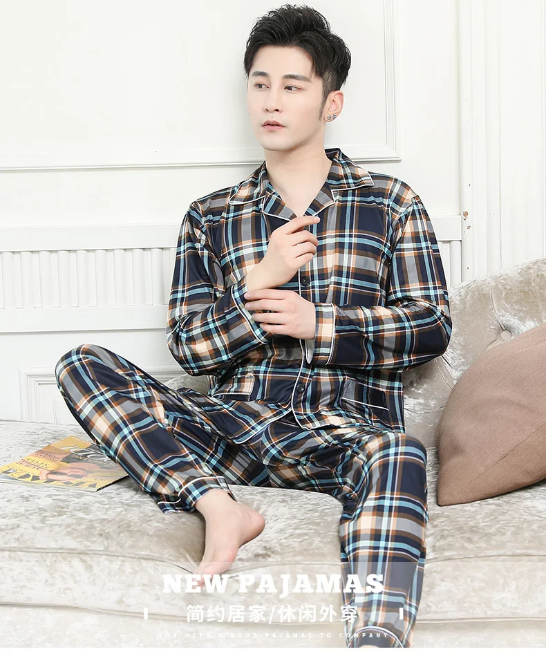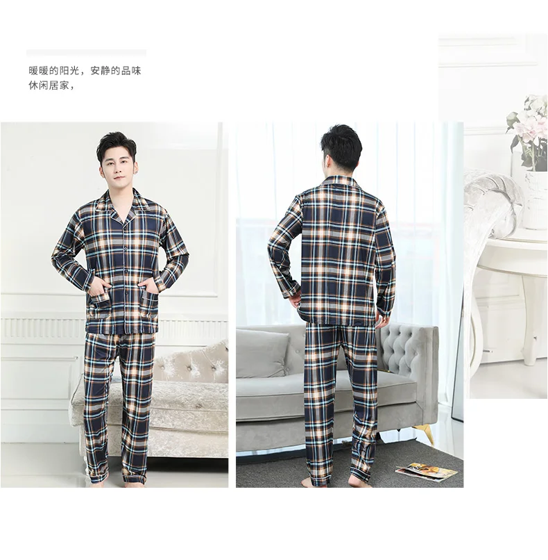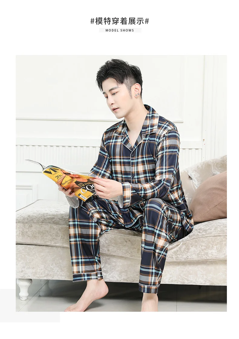 | Basic information | High Quality Autumn Pajamas Mens Milk Silk Sleepwear Long Sleeve 2 Pieces Pajama Set Men Casual Style |