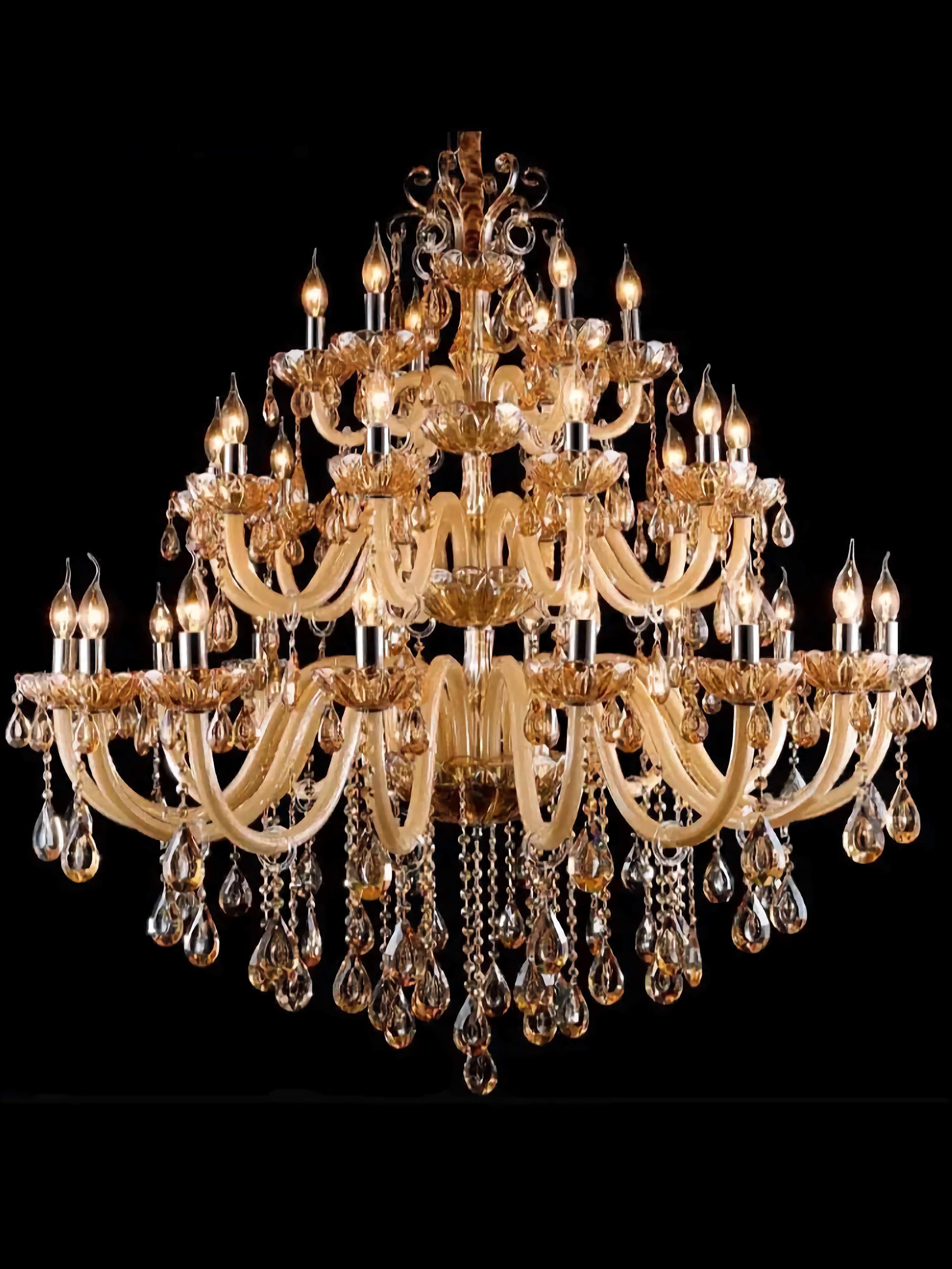 Large 15/18/24/34 lights 2/3 Fl Modern Big Lustres 100% K9 Crystal Luxury Home Decoration Amber Silver Villa Chandelier Lighting