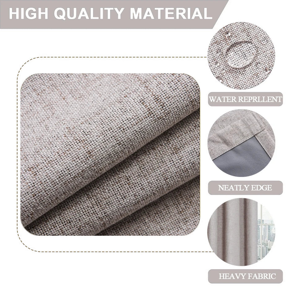 Linen 100% Blackout Curtains Water Proof Curtains for Living Room