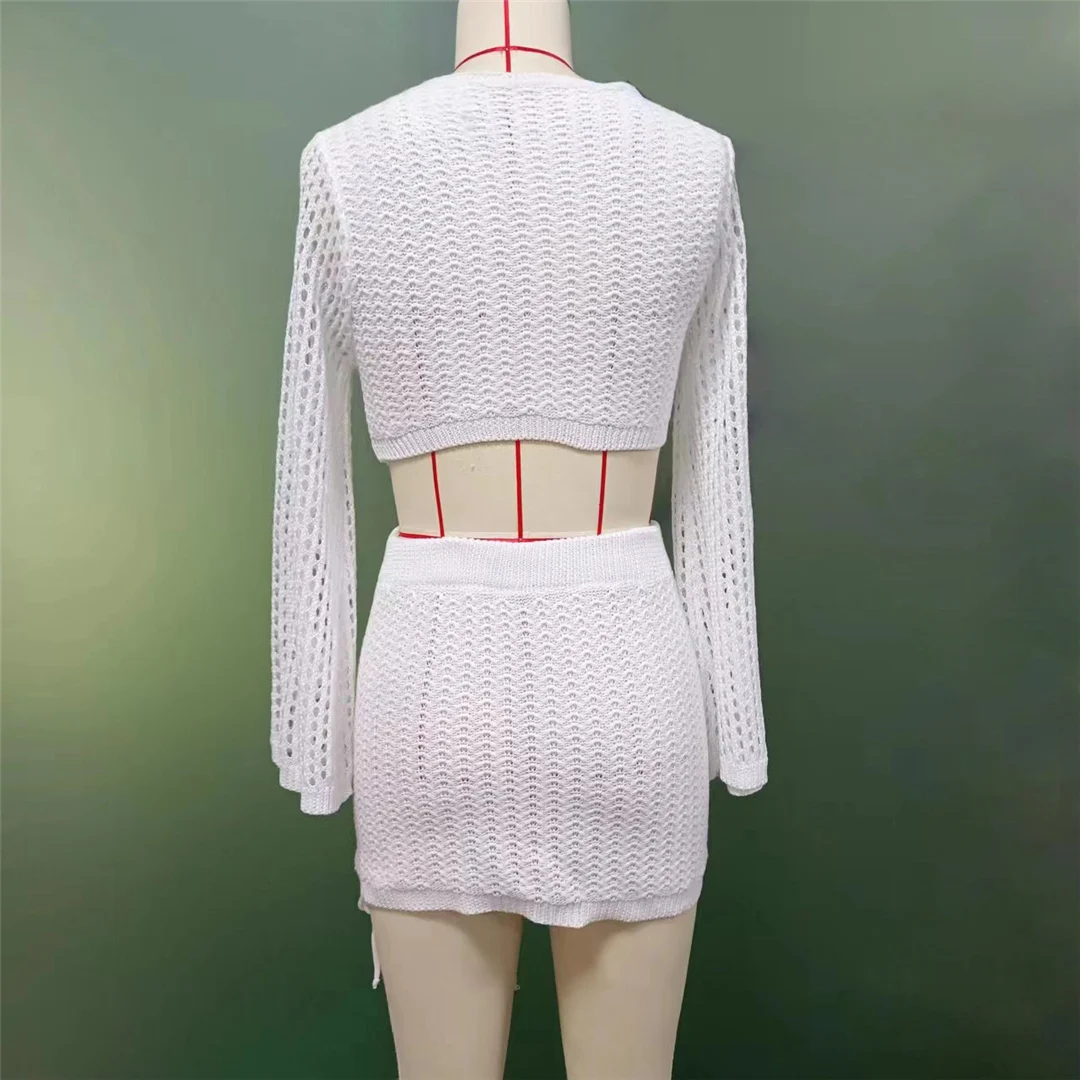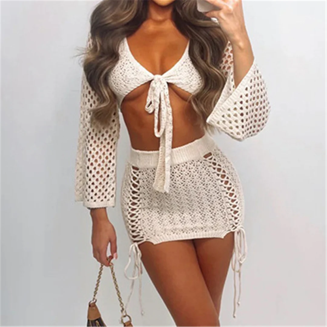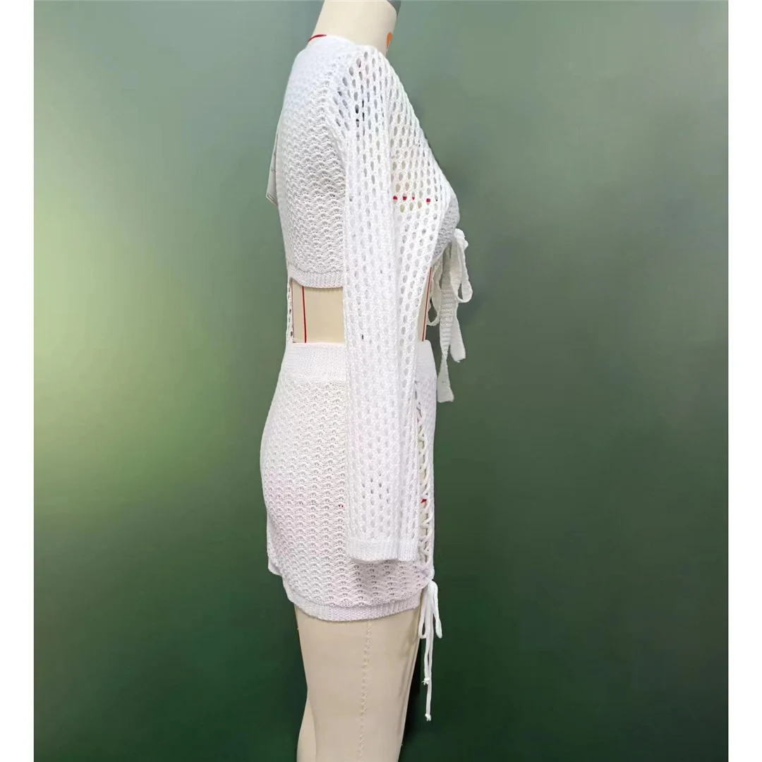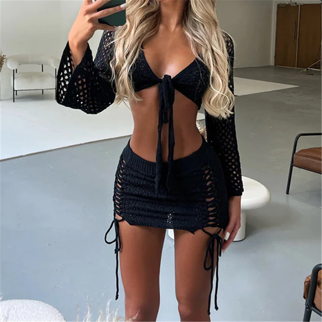 Long Sleeve Crochet Knitted Tunic Beach Cover Up