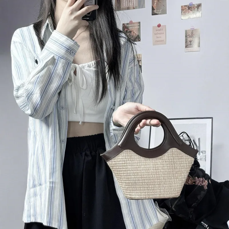 2025 Luxury Design Women Handmade Rattan Totes New Fashion Versatile Straw Woven Handbags Lady Casual Summer Beach Shoulder Bag