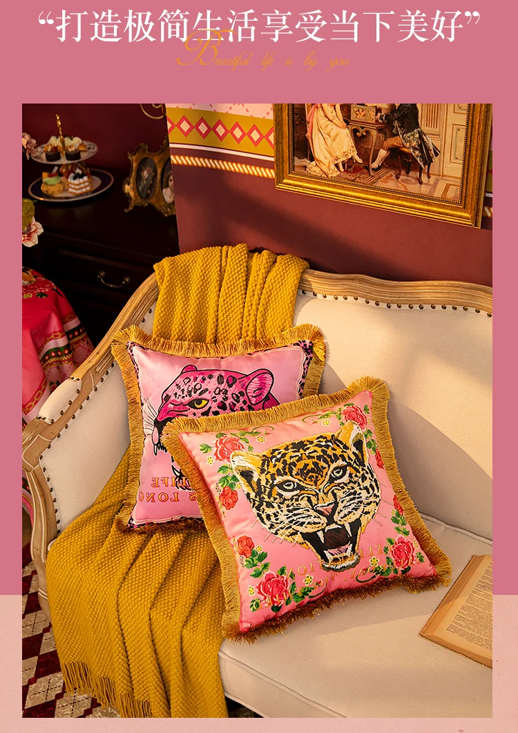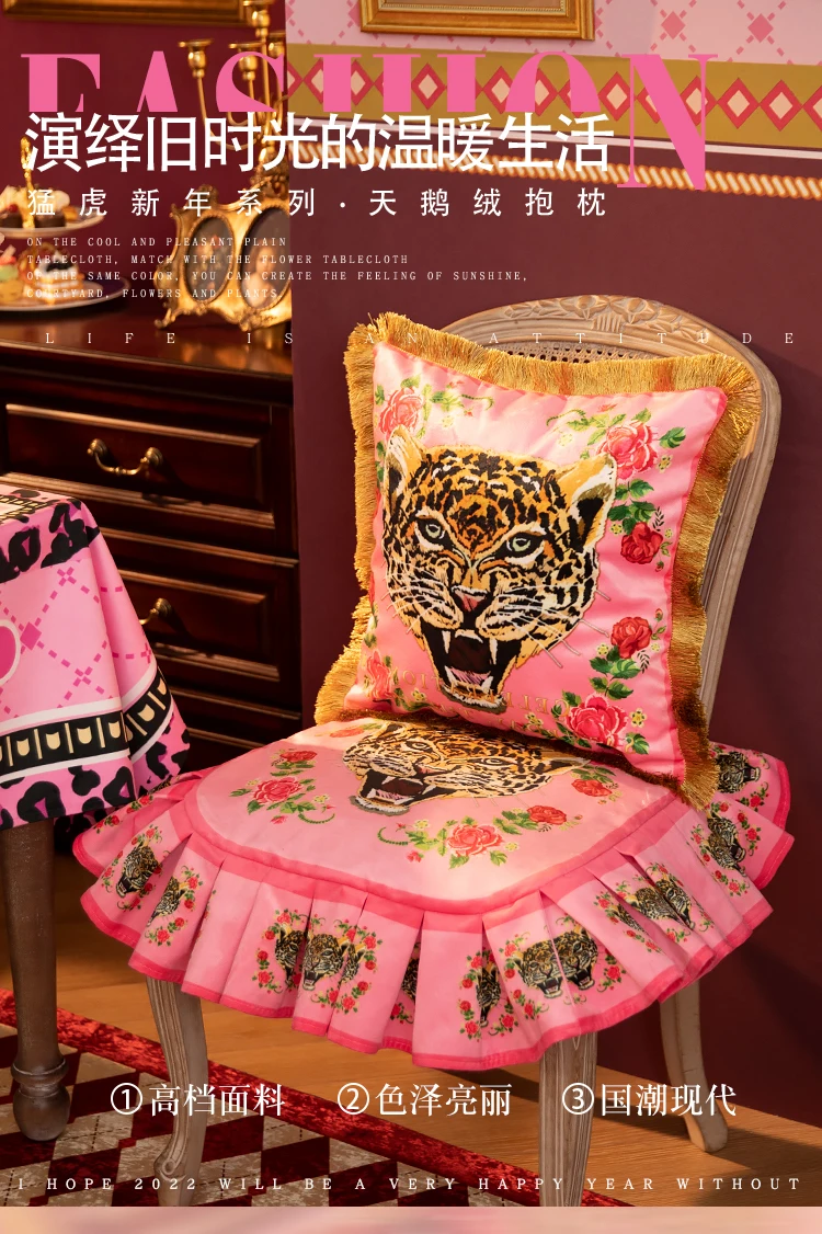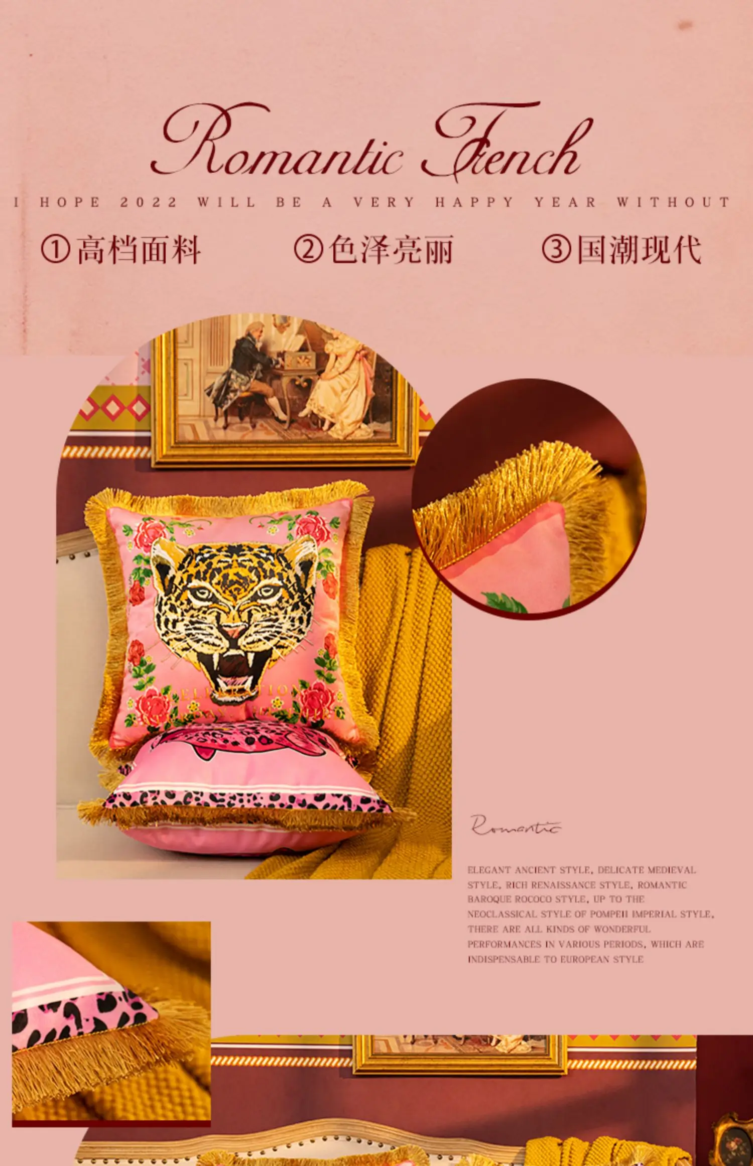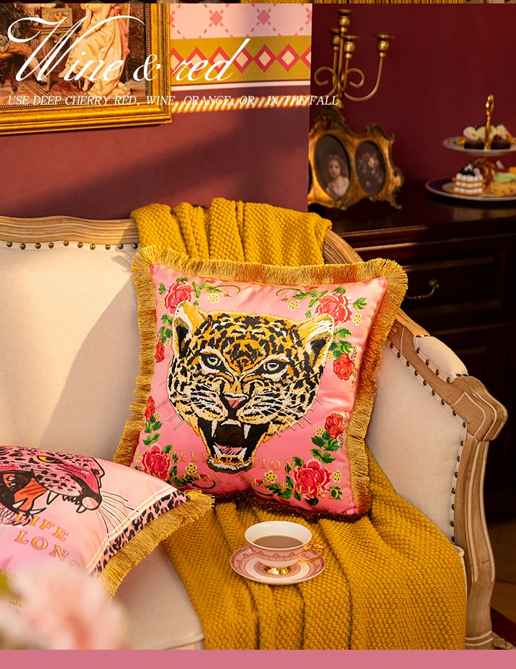 Luxury Pink Tiger Pillowcase Double-sided Velvet Tassel Living Room Sofa Decoration Square Cushion Cover