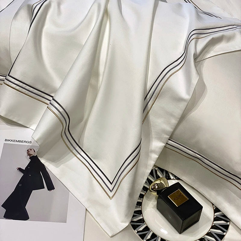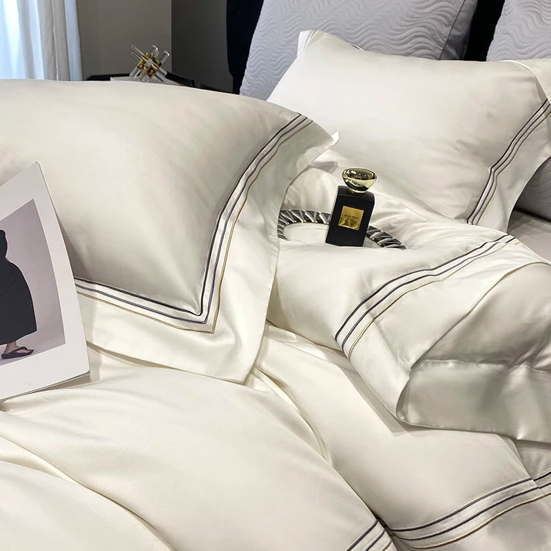 Luxury Three-line Embroidery Solid Color 1000TC Egyptian Cotton Bedding Set Duvet Cover Bed Sheet/Fitted Sheet Pillowcases 4Pcs