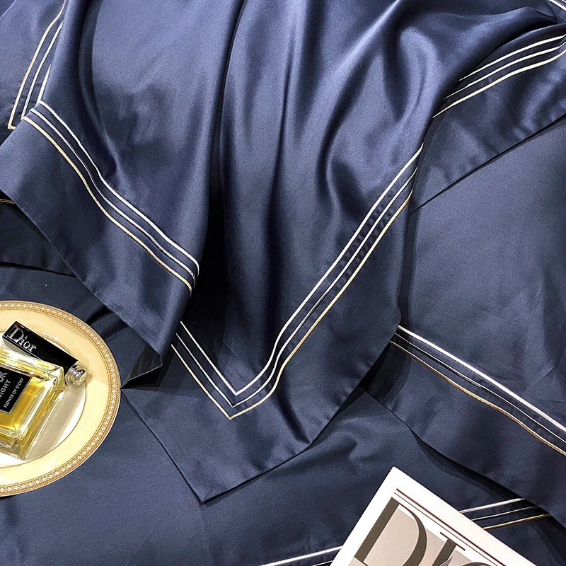 Discover the luxurious and exquisite HOME TEXTILE bedding set made of 1000TC Egyptian cotton with three-line embroidery. Choose from a variety of sizes to perfectly fit your quilt. The top-quality fabric is soft, breathable, and comfortable, perfect for all seasons. This hotel-style set includes a duvet cover, two pillowcases, and a fitted sheet. With fast shipping options available, your new bedding set will arrive quickly at your doorstep. Don't miss out on this exceptional product!
