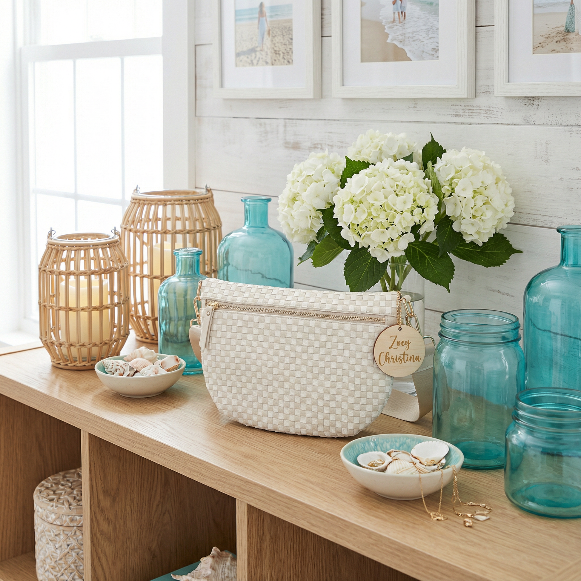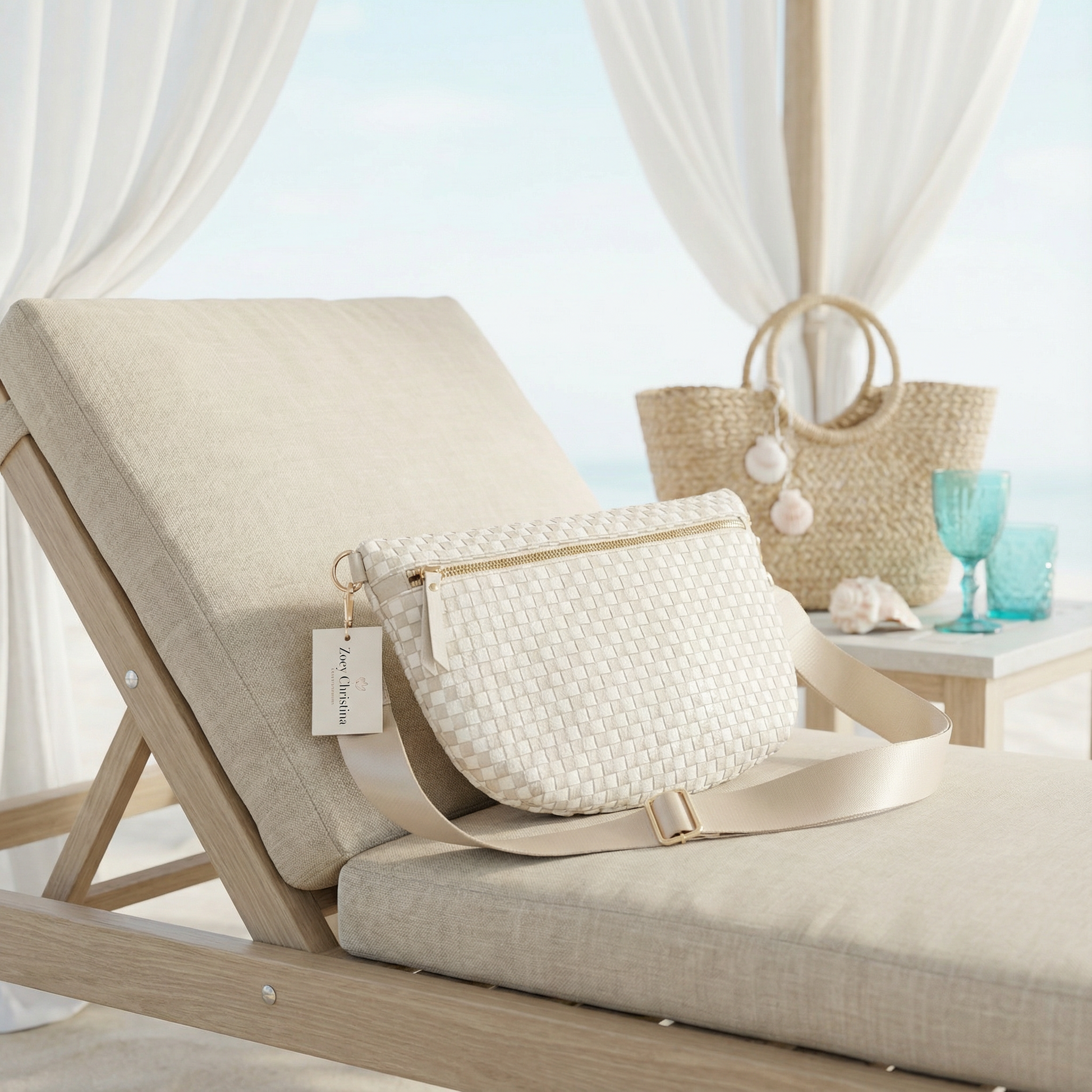 This bag was curated specifically to pair with our coastal garlands, foil balloon banners, and bridal accessories. It photographs beautifully in neutral, airy, beach-inspired settings.
