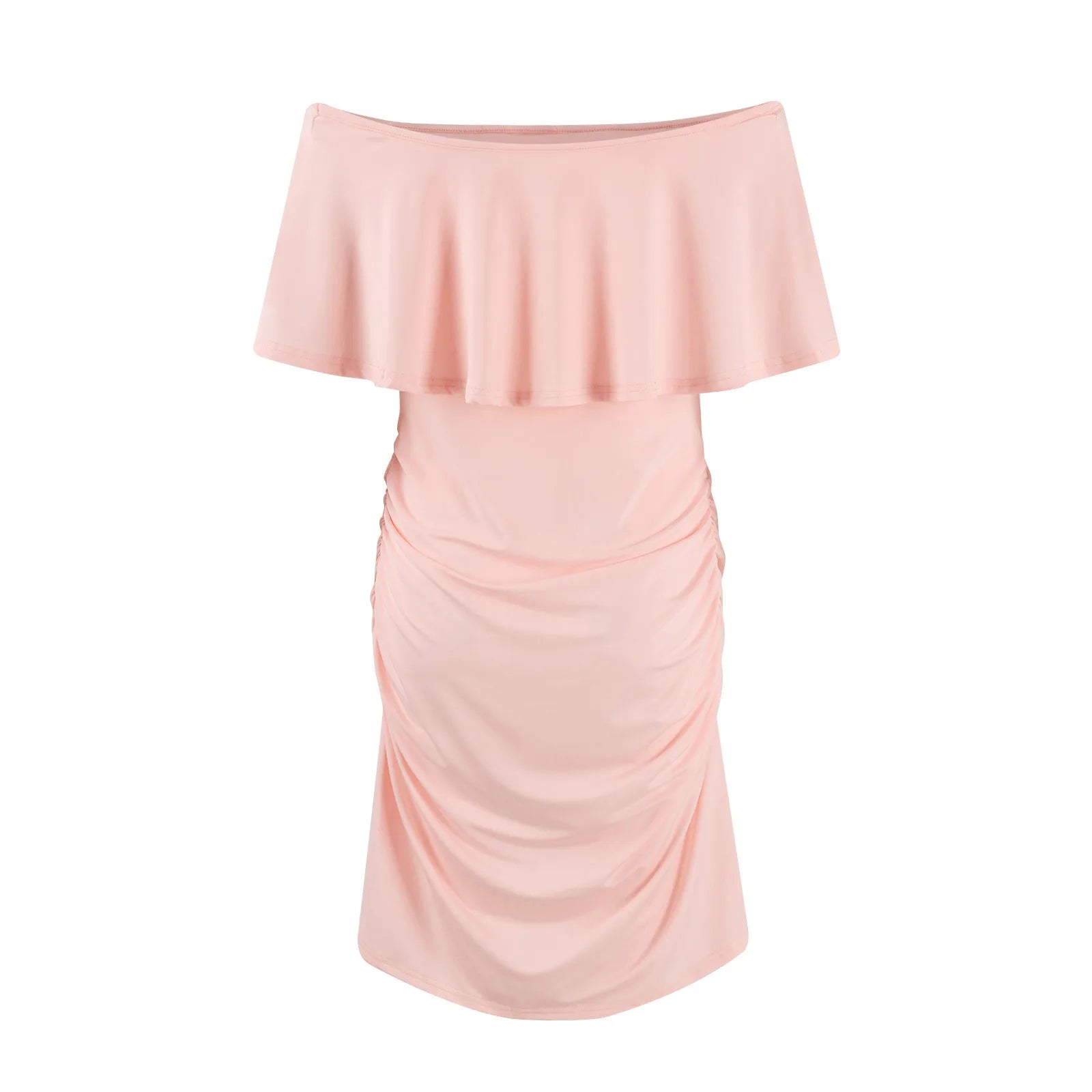 The Maternity Dress Short Sleeve Slash Ruffles is perfect for all seasons and designed for mothers-to-be who want to stay stylish and comfortable. This dress is made with a mix of polyester and cotton fabric and features a boat neck and A-line silhouette. It also comes in a natural color with camouflage appliques for a unique touch. As a breastfeeding-friendly dress, it's a perfect choice for new moms who want to feel confident and fashionable. With its above knee length, it's both practical and stylish, making it a must-have for any maternity wardrobe.