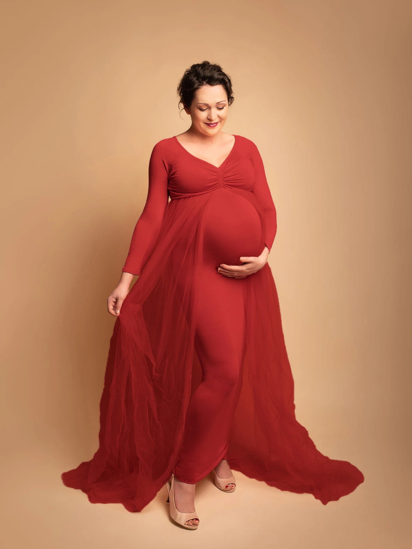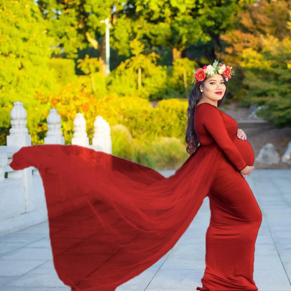 This maternity dress is made from a combination of high-quality polyester, voile, and knitting cotton, ensuring both comfort and style. With its solid color and sleek sheath silhouette, this dress is perfect for all seasons and will make you feel confident and sexy. The v-neck collar and full length sleeves add a touch of elegance to the design, making it a must-have for any expectant mother. This floor-length dress truly embodies the natural beauty of the season and will surely be a top choice for any fashion-forward mom-to-be.