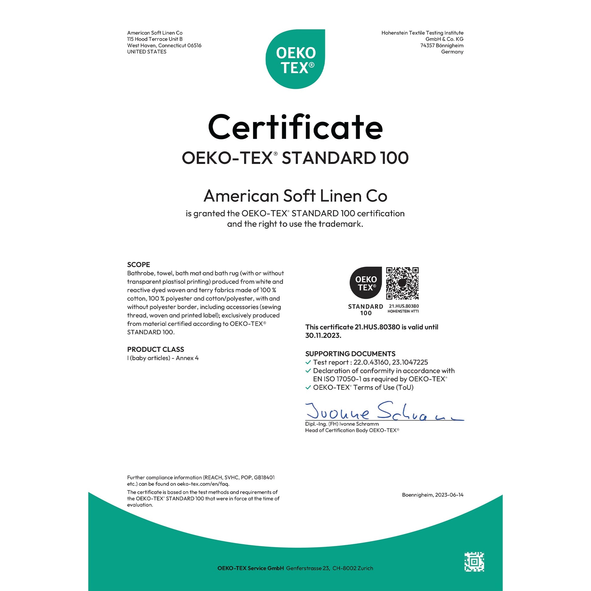 - OEKO-TEX® STANDARD 100 keeps you and your family safe by testing [each component of] a certified product against a list of over 1,000 harmful substances. Certificate #21.HUS.80380 by Hohenstein.