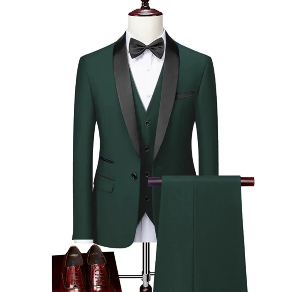 Men's Three Pieces Slim Fit Suit Jacket Blazer Coat Pants & Vest