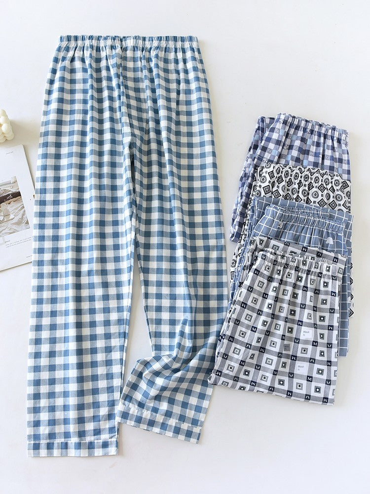 Experience ultimate comfort with these premium pure cotton pajama pants designed specifically for young and middle-aged men. Perfect for spring and summer lounging, these high-waisted long pants feature a classic lattice pattern and convenient button placket. The luxurious cotton twill blend (95% cotton, 5% polyester) ensures breathability while maintaining structure—ideal for relaxing at home with air conditioning. The common thickness provides year-round versatility without bulk. Embrace simple, sophisticated style with these leisure essentials that combine practicality with refined comfort for the discerning gentleman.