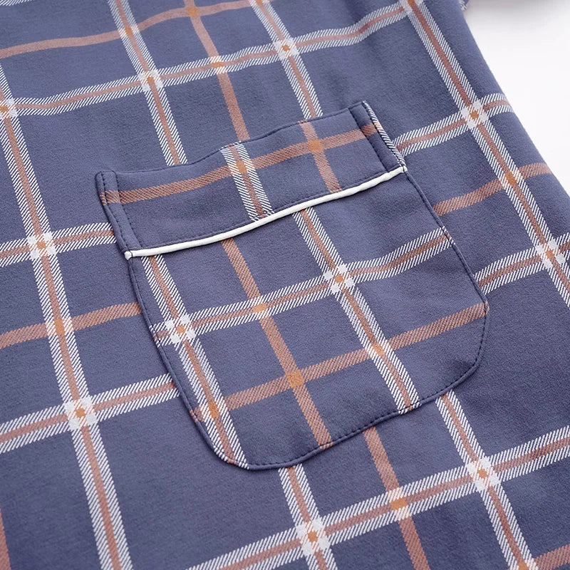 Men’s Cotton Robe Long Sleeve Kimono Bathrobe With Long Pants 2pcs Robes Set Sleepwear Spring Autumn V-Neck Plaid Pajama