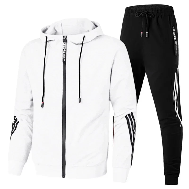 Men Tracksuit Casual Joggers Hooded Sportswear Jackets + Pants 2 Piece Set
