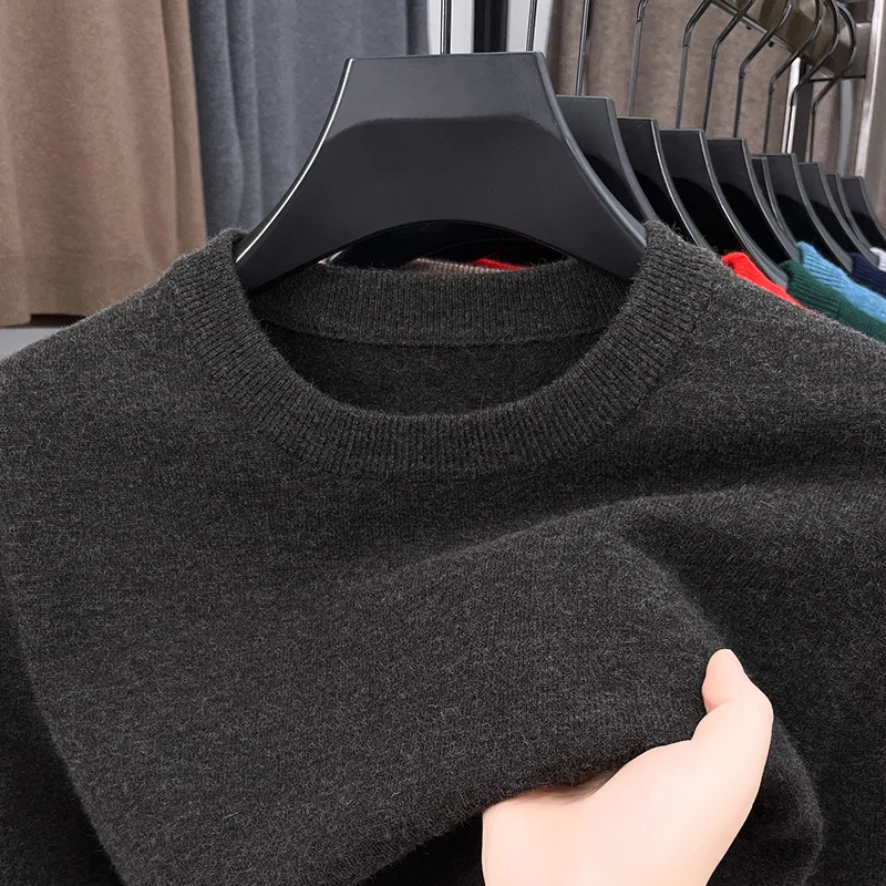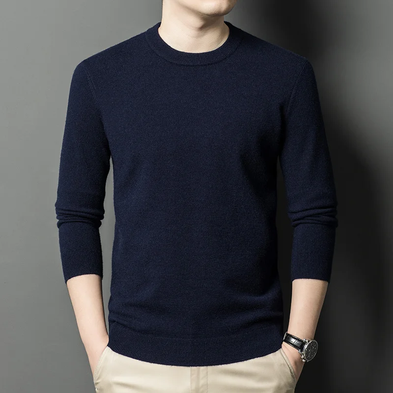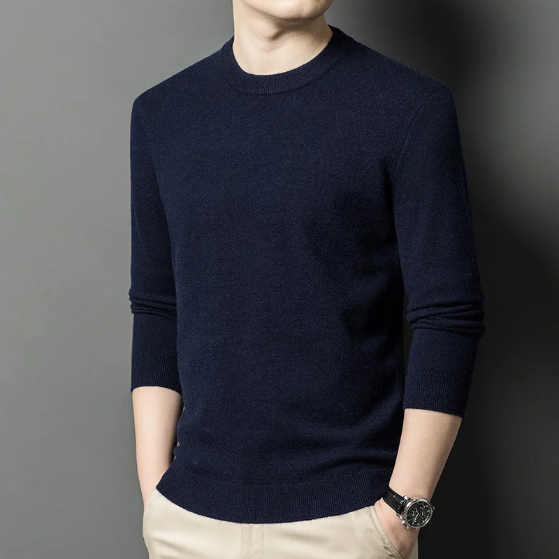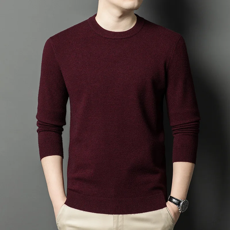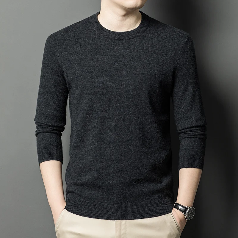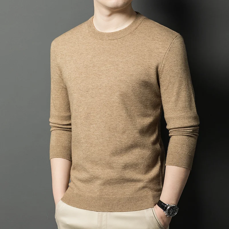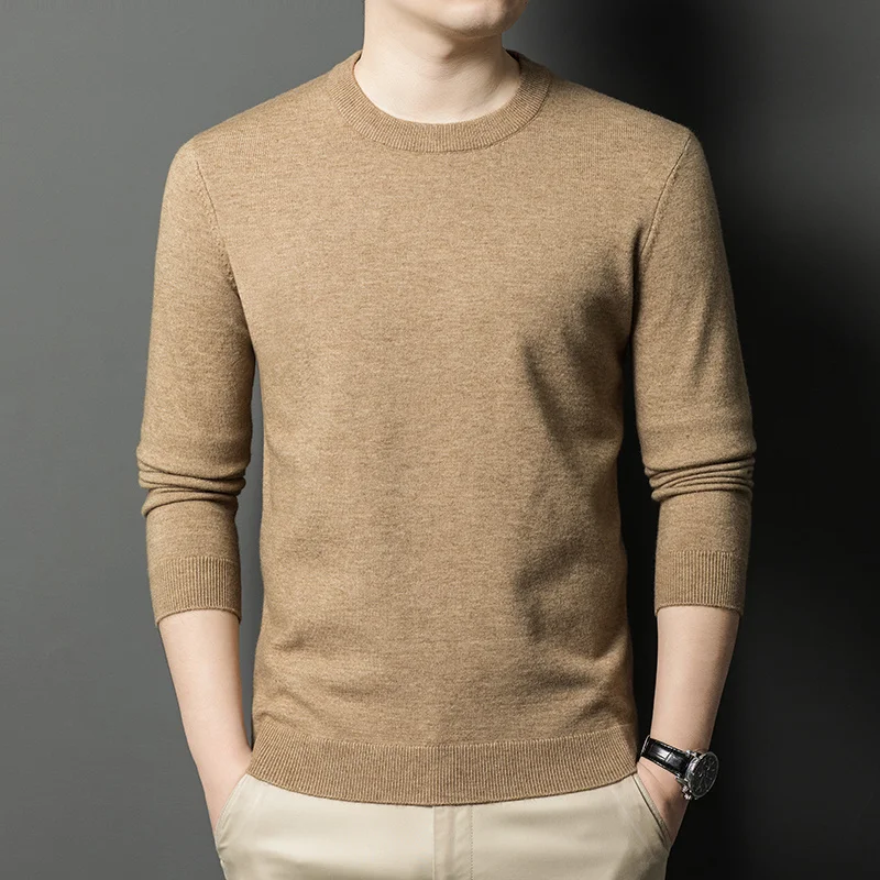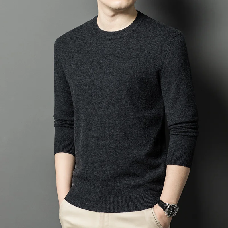 Men's Casual Sweater Round Neck Long Sleeve Knitted Sweater Diamond Pattern