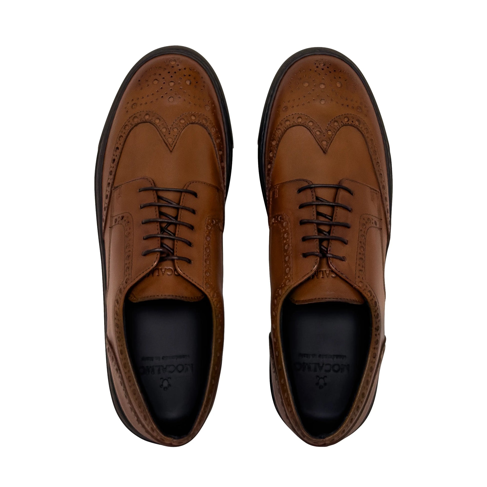 Exude gentlemanly style with our men’s wingtip leather dress sneakers in cognac, featuring exquisite brogue detailing. A modern, comfortable take on a classic dress shoe, these wingtip brogue sneakers are perfect for work, business meetings, or formal occasions. Handcrafted in Italy from soft full-grain calf leather, they feature cushioned interiors and a lightweight EVA outsole that absorbs step impact, delivering all-day comfort, support, and timeless elegance.