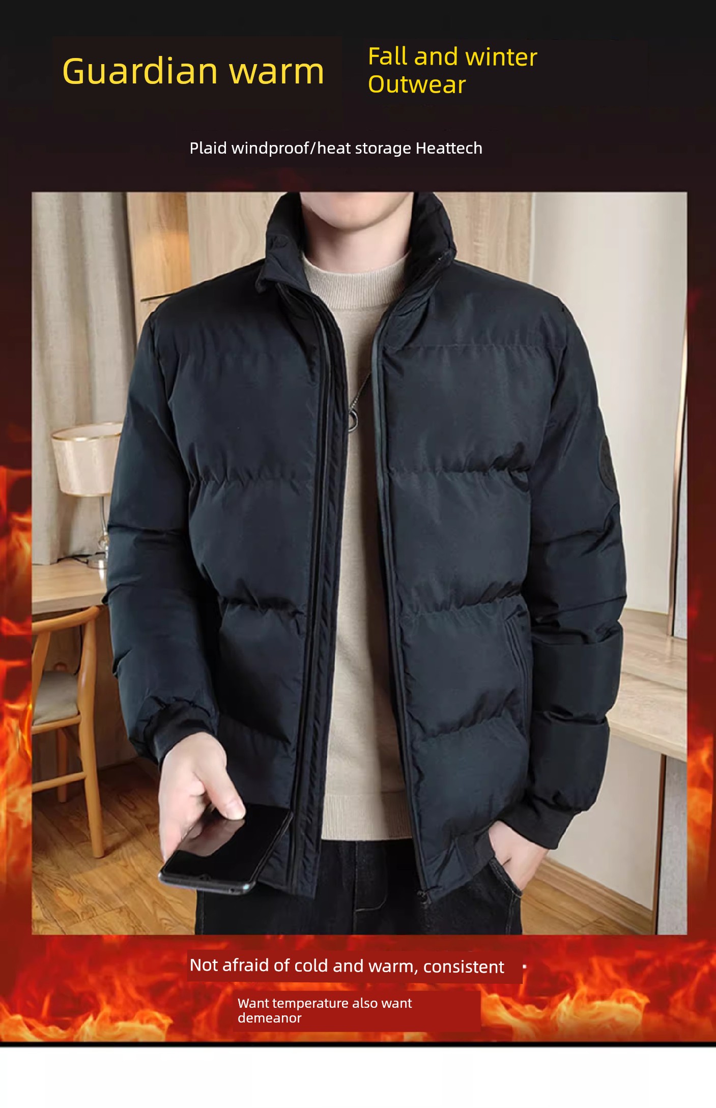 Men's Down Jacket Thickened Warm Leisure Stand-up Collar Slim Fit Cold-Proof Cotton-Padded Coat
