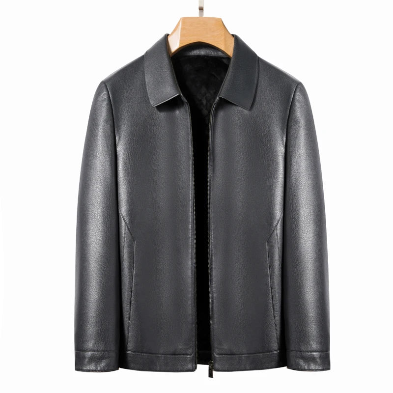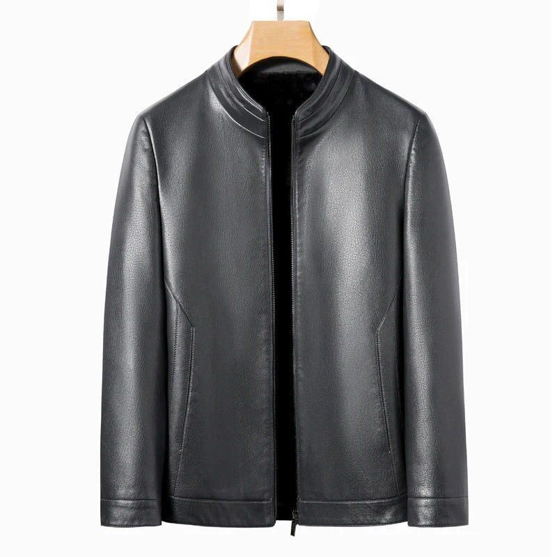Men's Genuine Leather Polo Mock Neck Jacket Slim Sheepskin Coat Spring and Autumn