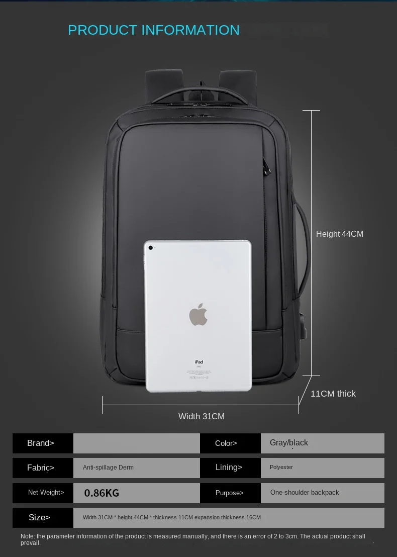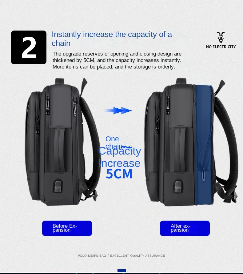 Men's Large Capacity Expandable Travel Backpack for 15.6 Inch Laptop Multi-function Anti-Theft