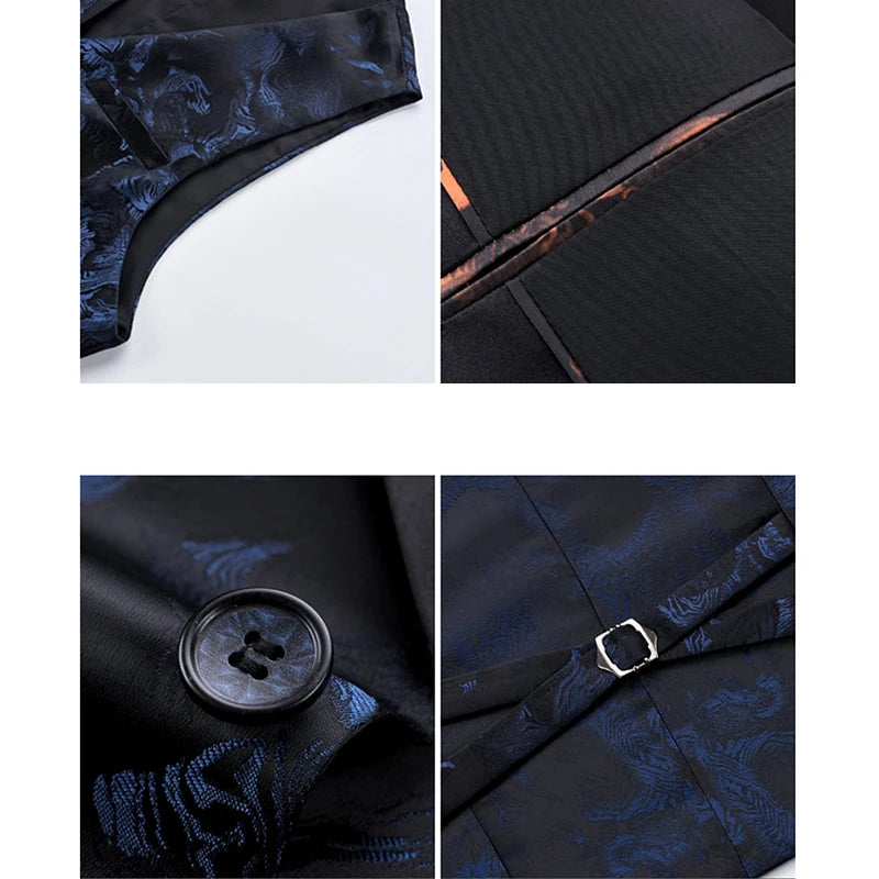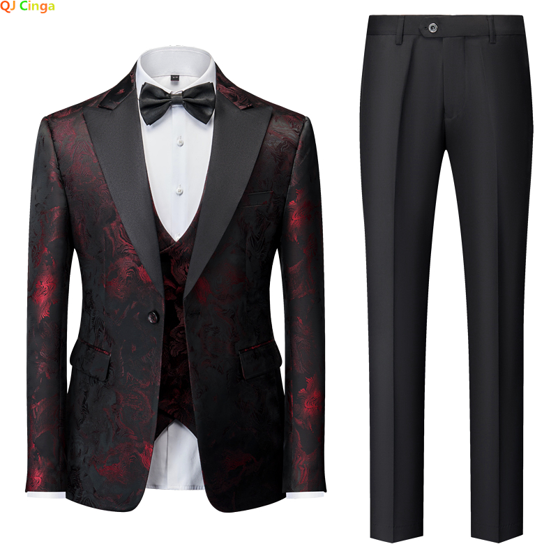 Men's Suit Set Three Pieces, Jacquard Fabric Jacket Pants & Vest