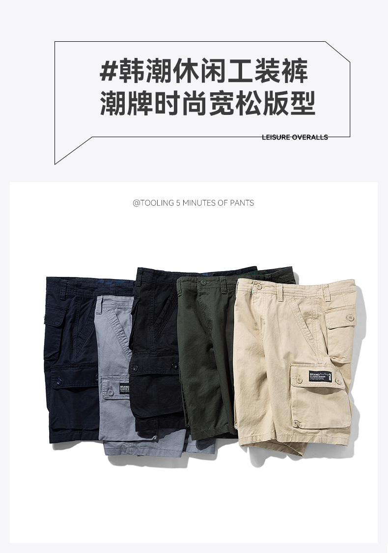 These men's summer straight-leg casual parka shorts combine style and comfort with a youthful, trendy design. Made from 95% cotton and 5% spandex, they offer slight stretch and a wrinkle-free finish for easy wear. Featuring multiple pockets and a mid-rise waist, these durable shorts are perfect for casual outings in warm weather. Designed for a straight fit and crafted for summer, they are exclusively available online, making them a must-have for your seasonal wardrobe.