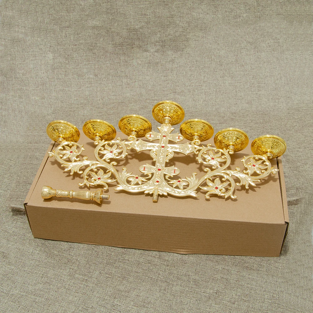 Experience the premium quality and value of the Metal Alloy 7 Branch Candle Holder Church Home Decoration Gold Plated. Trust in its durable design, crafted from fine metal in Mainland China and free from Hign-concerned Chemicals. Elevate any setting with elegance and style, and bring a touch of luxury to your home or church. Say yes to this exquisite candle holder now!