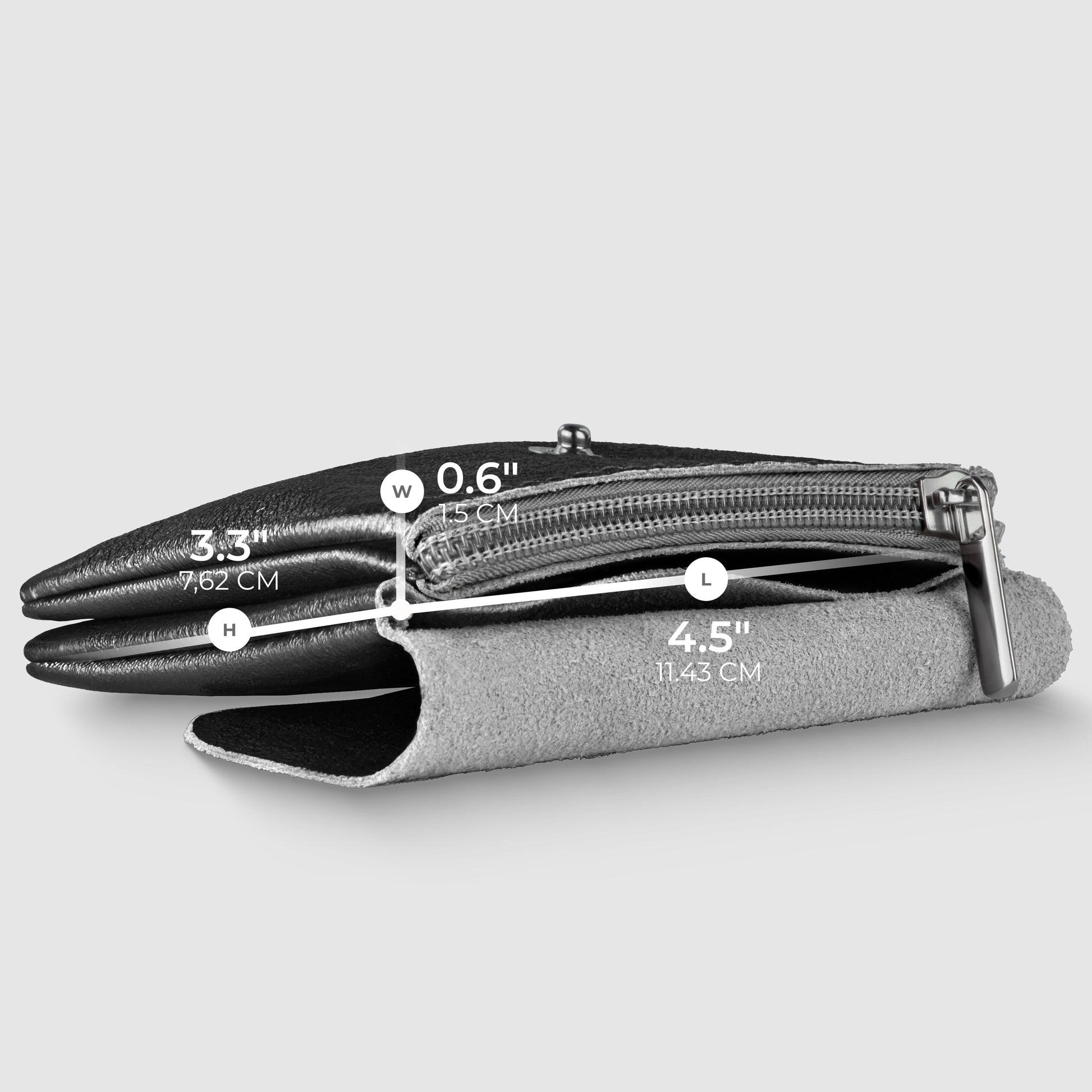Inside, the same material lines the wallet with a functional layout: one main compartment and a built-in zippered section keep your essentials neat and accessible.