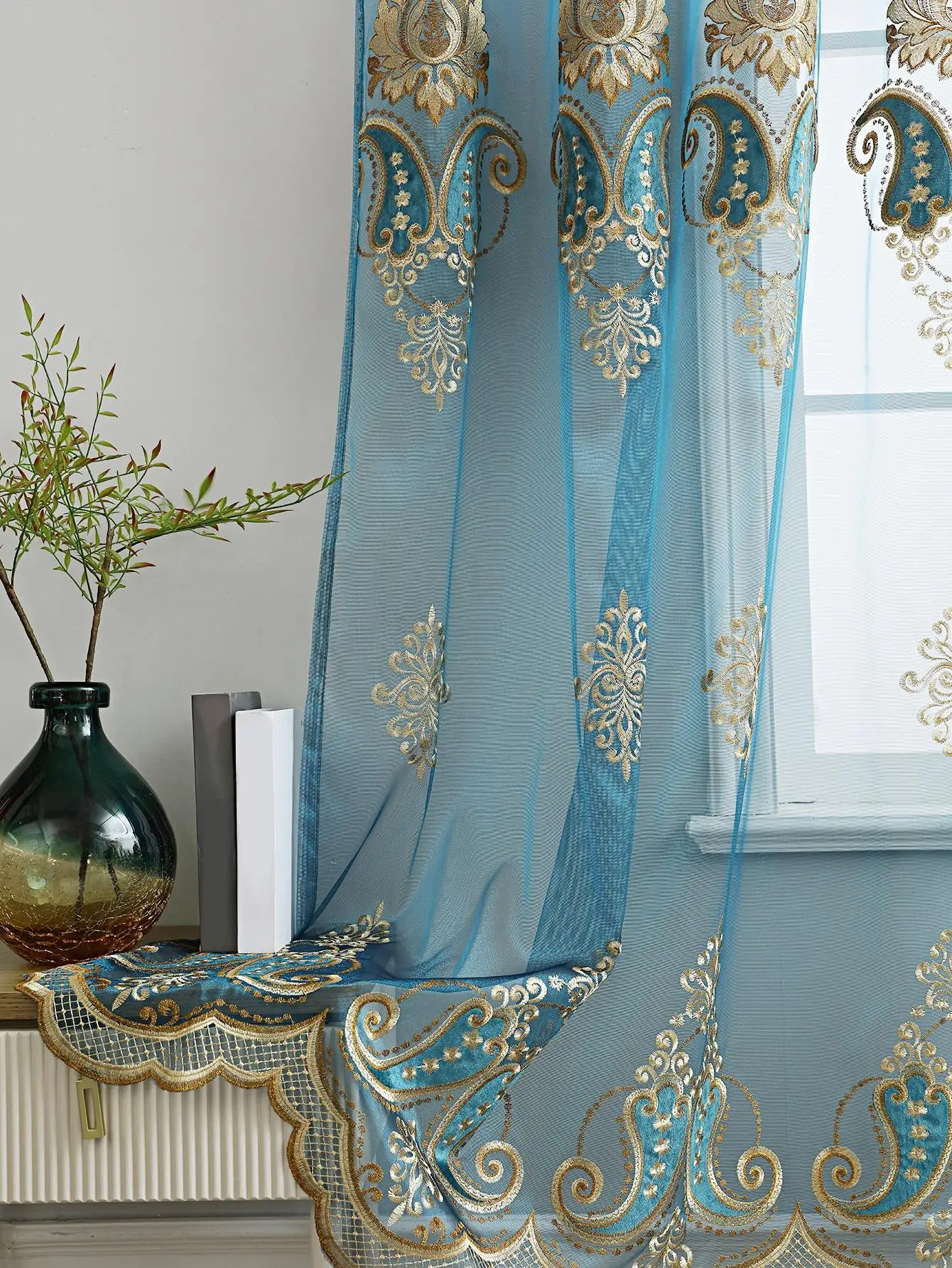 Modern European High Luxury Embroidered Bedroom and Living Room Screen Curtain 1PC