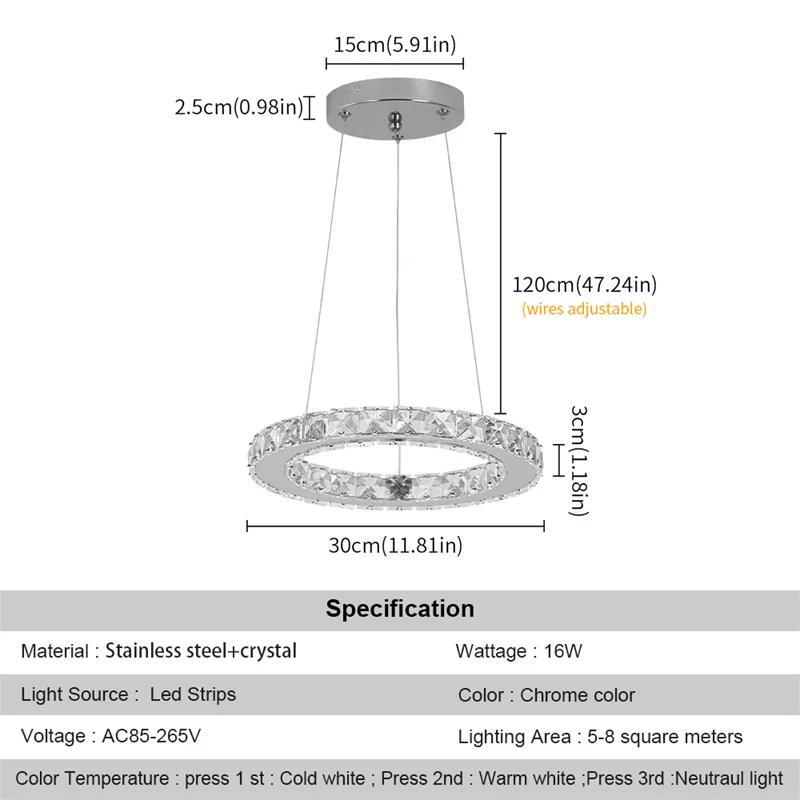 Modern Stainless Steel Ring Led Chandeliers For Dining Room Home Decor