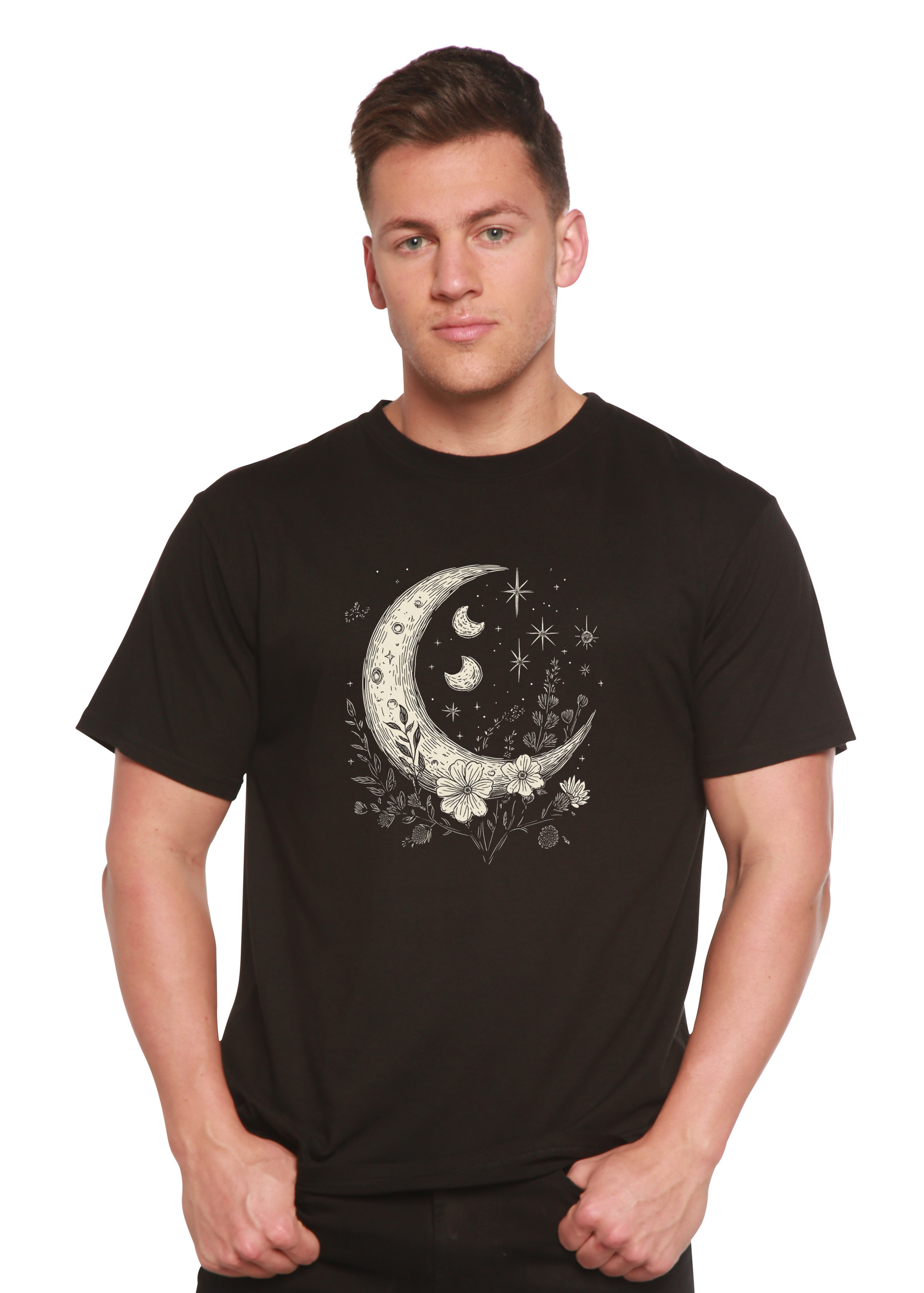 Our Moons and Stars Boho Flowers Vintage Unisex Bamboo/Cotton Graphic T-Shirts are celebrated for their superior moisture absorption and wicking capabilities compared to cotton shirts. Known for their breathability, bamboo viscose shirts have been proven to remain 1-2 degrees cooler than standard cotton shirts. If you've only worn cotton, nylon, or other fabric blends that often foster odors and bacteria, our bamboo viscose T-shirts will surely surpass your expectations. Not only aesthetically pleasing, their tactile quality is truly remarkable. Unlike other brands that use thinner, substandard fabric susceptible to significant shrinkage and damage, we prioritize quality.