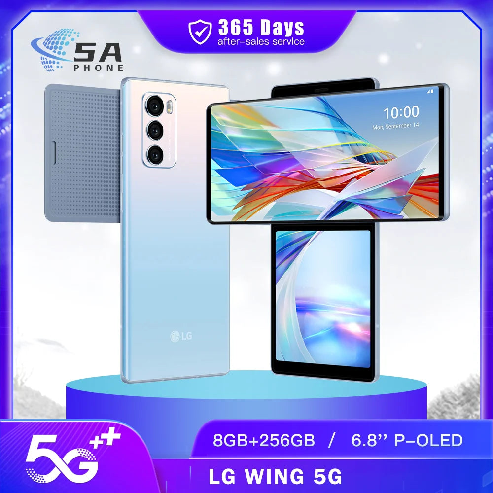 Original LG WING 5G LMF100VM LMF100TM 5G Mobile Phone NFC 8GB+256GB Fingerprint 6.8'' P-OLED Screen Octa-Core Android SmartPhone
