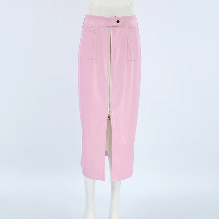 Pink Faux Leather Fashion Skirt